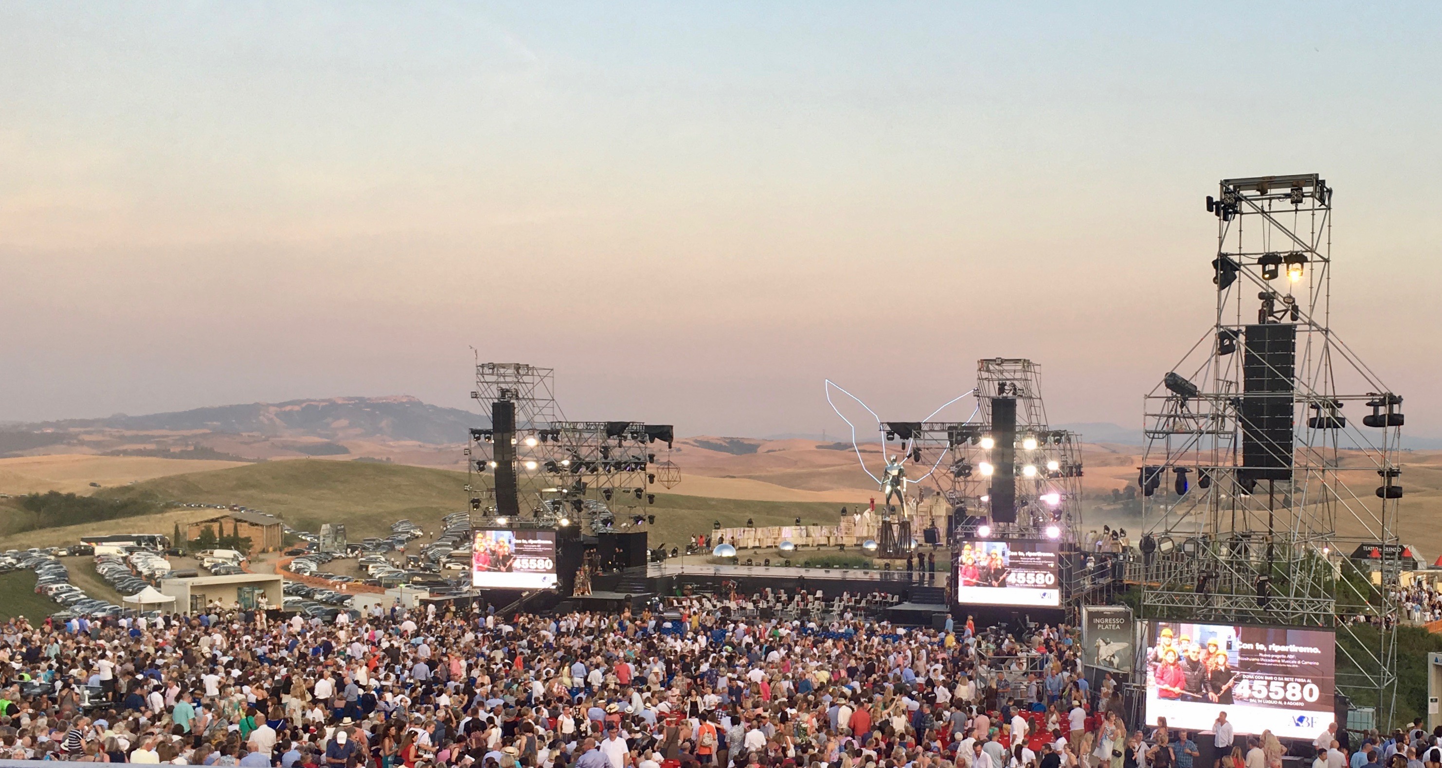 The organisation was typically Italian. Chaotic. The concert started 50 minutes late, with no explanation. We listened to the last song on the way out and got the second bus to the car park and back to San Gimignano in good time. We avoided the hours of queuing for insuffient buses that so many complained about afterwards. We also struck lucky in that the Saturday night’s concert was cancelled due to a thunderstorm.