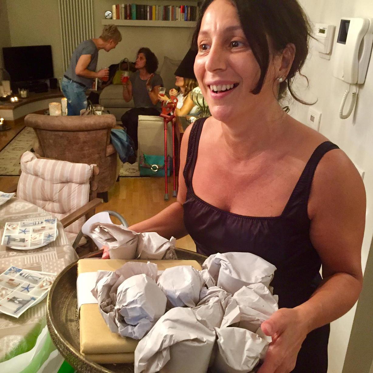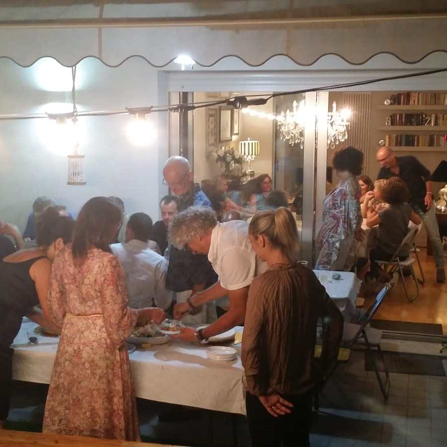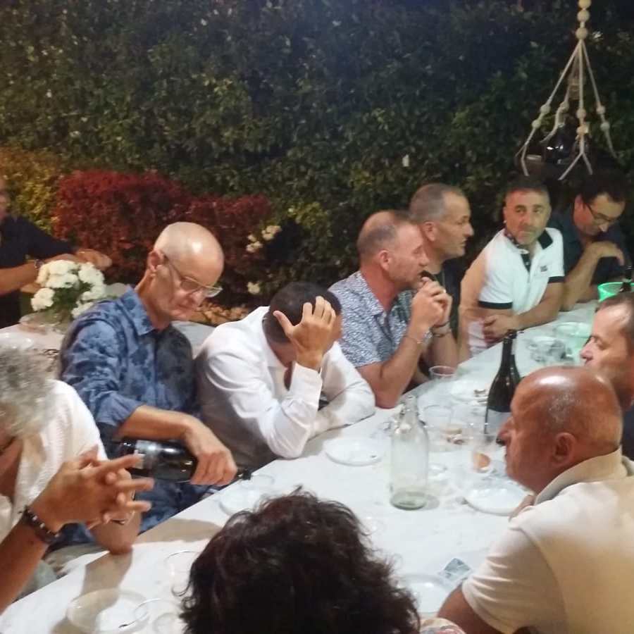 The party season continues. This time at Paolo and Sonia’s place. It was all set up for eating outside in their garden. The thunderstorm put paid to that. A very Italian solution. The ladies ate inside, the men outside under the awning.