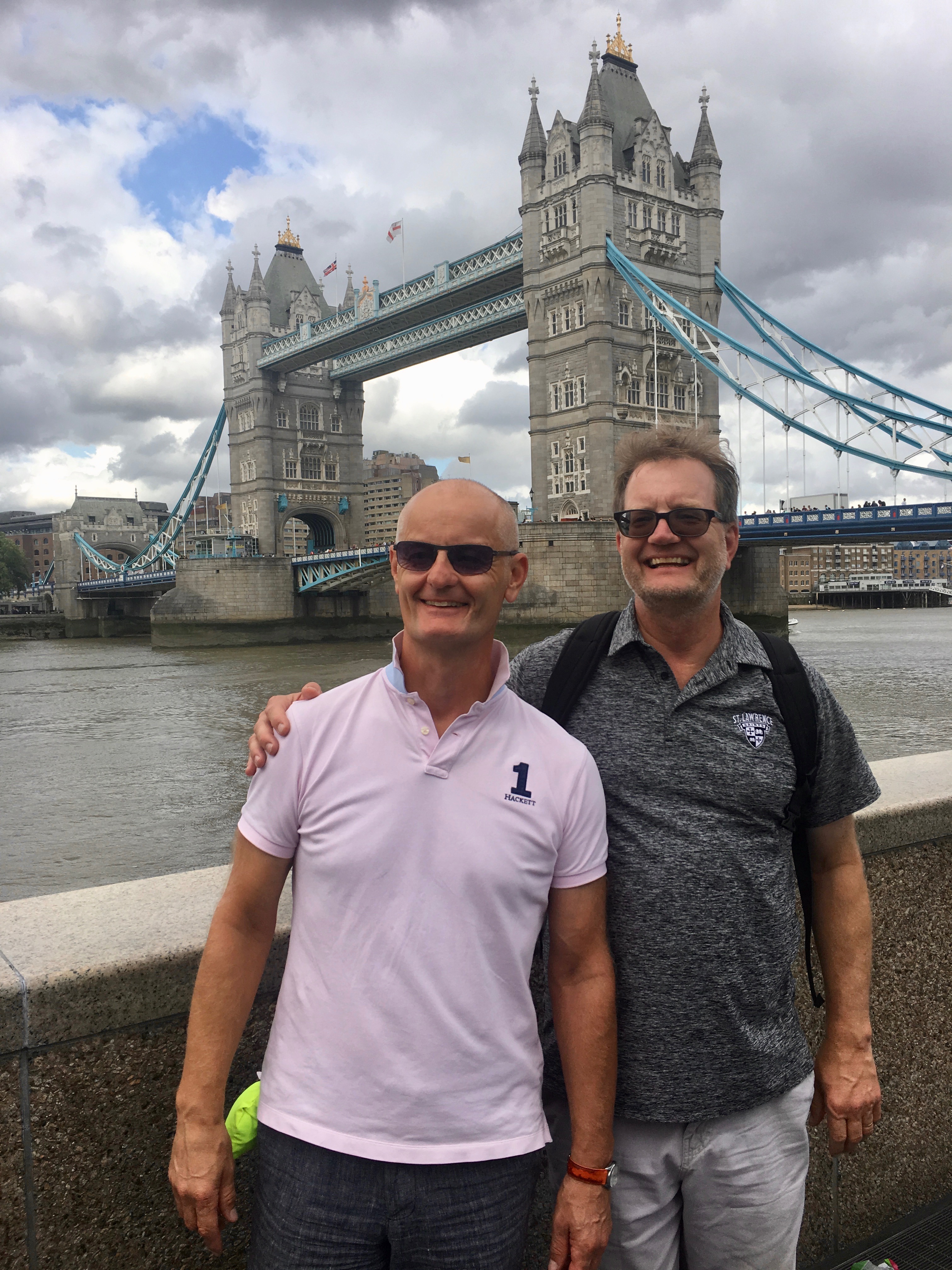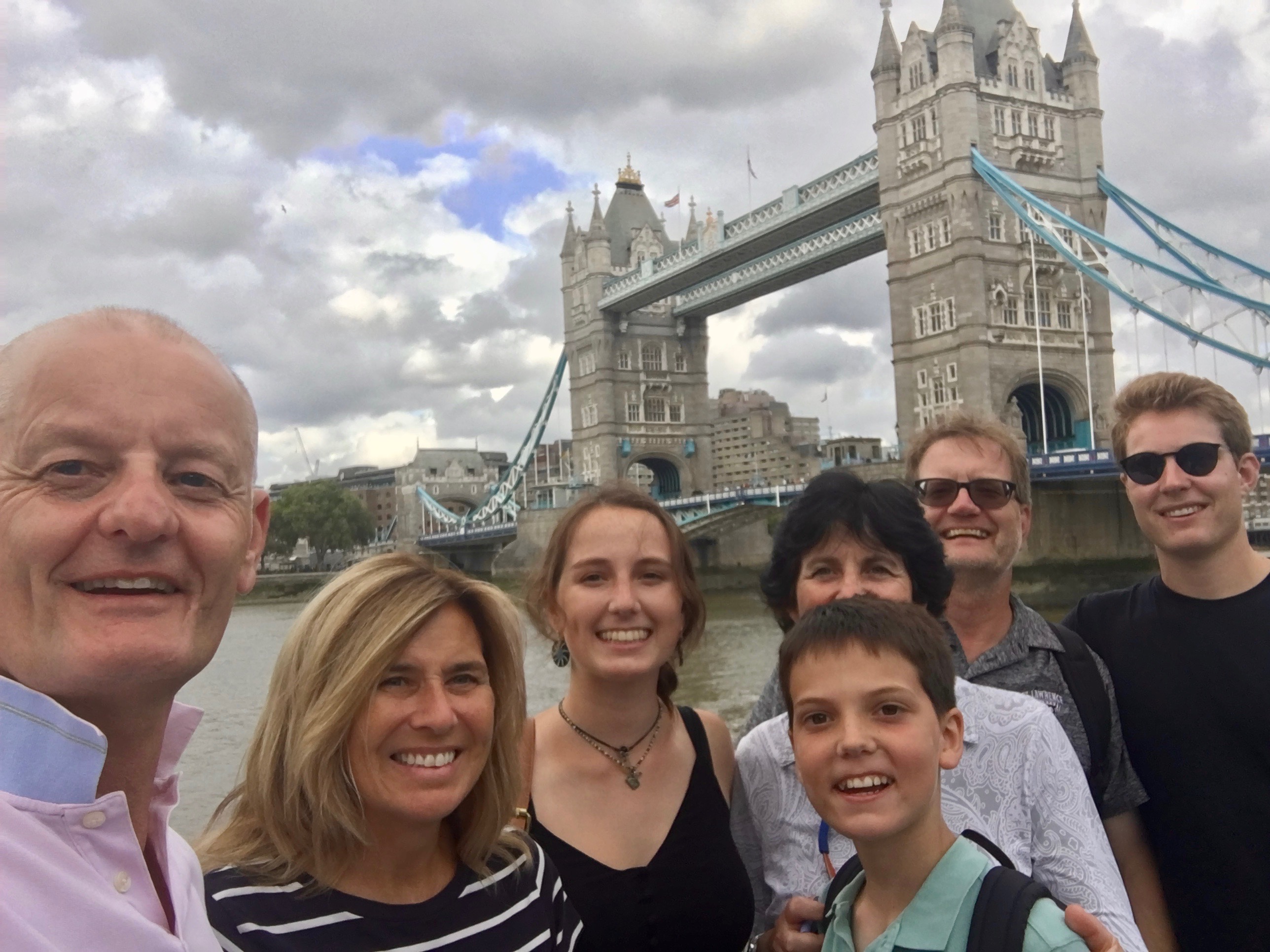 Colin, Jan, Jacqui, Trish (just), Graeme, Darren and Cam near a bridge in London