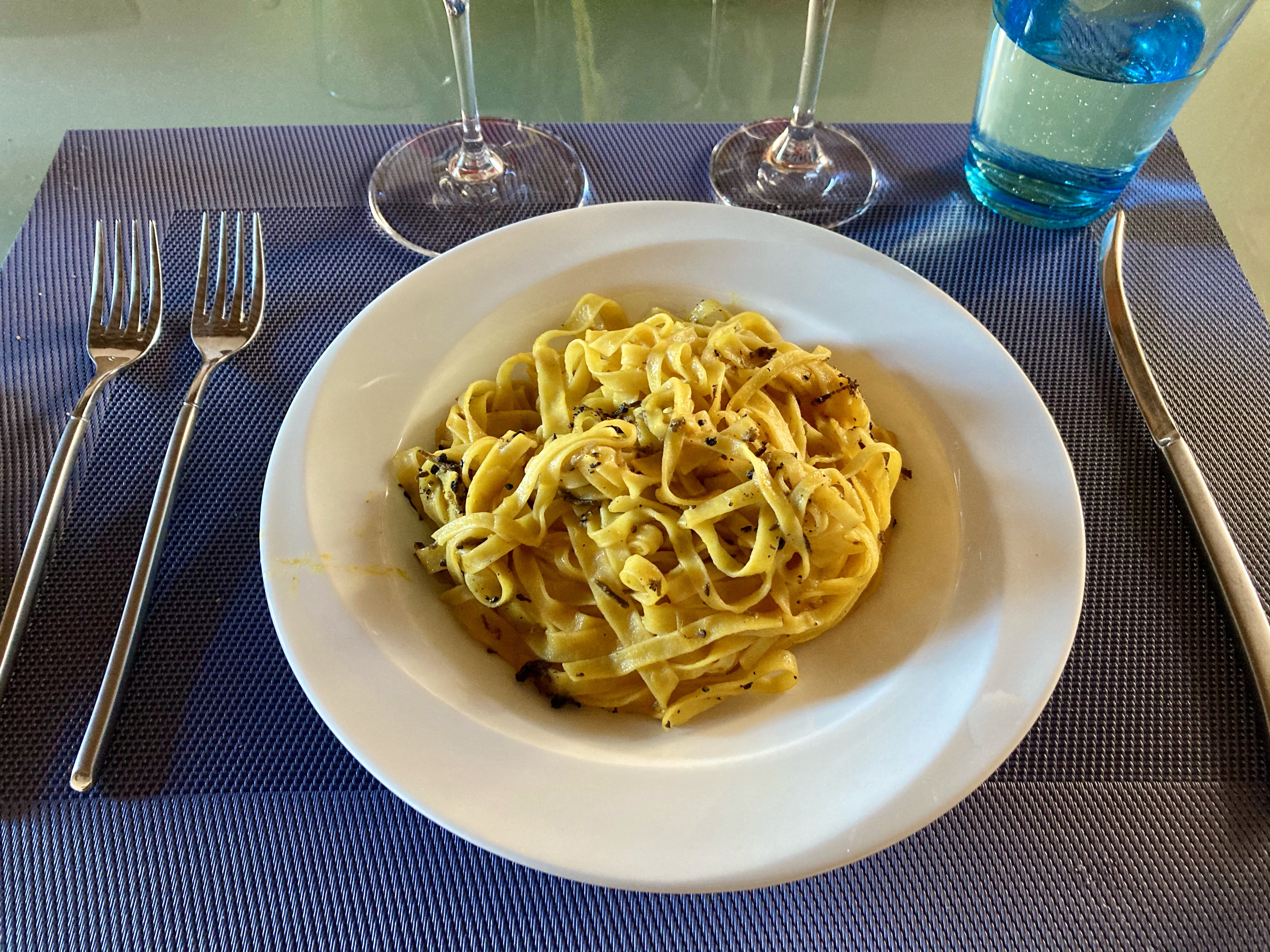Our anniversary lunch was delivered by Gaetano from Post Vecchia. The restaurant is only a few hundred metres inside the next Comune, but still out of bounds for us to collect.