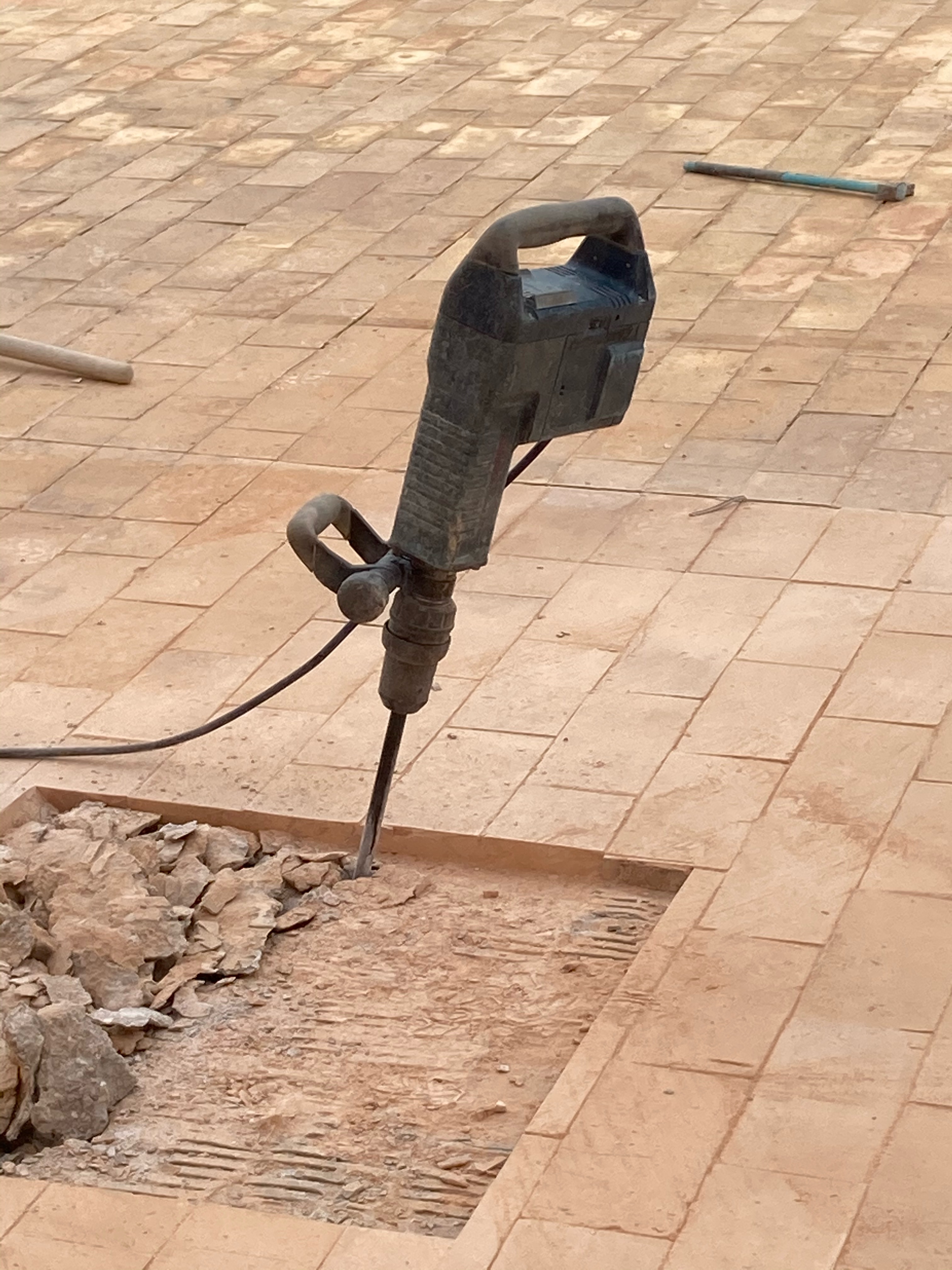 By the end of the week the cement for the back of the cantina had been put in and they’d made a start on the holes for the posts for the portico.