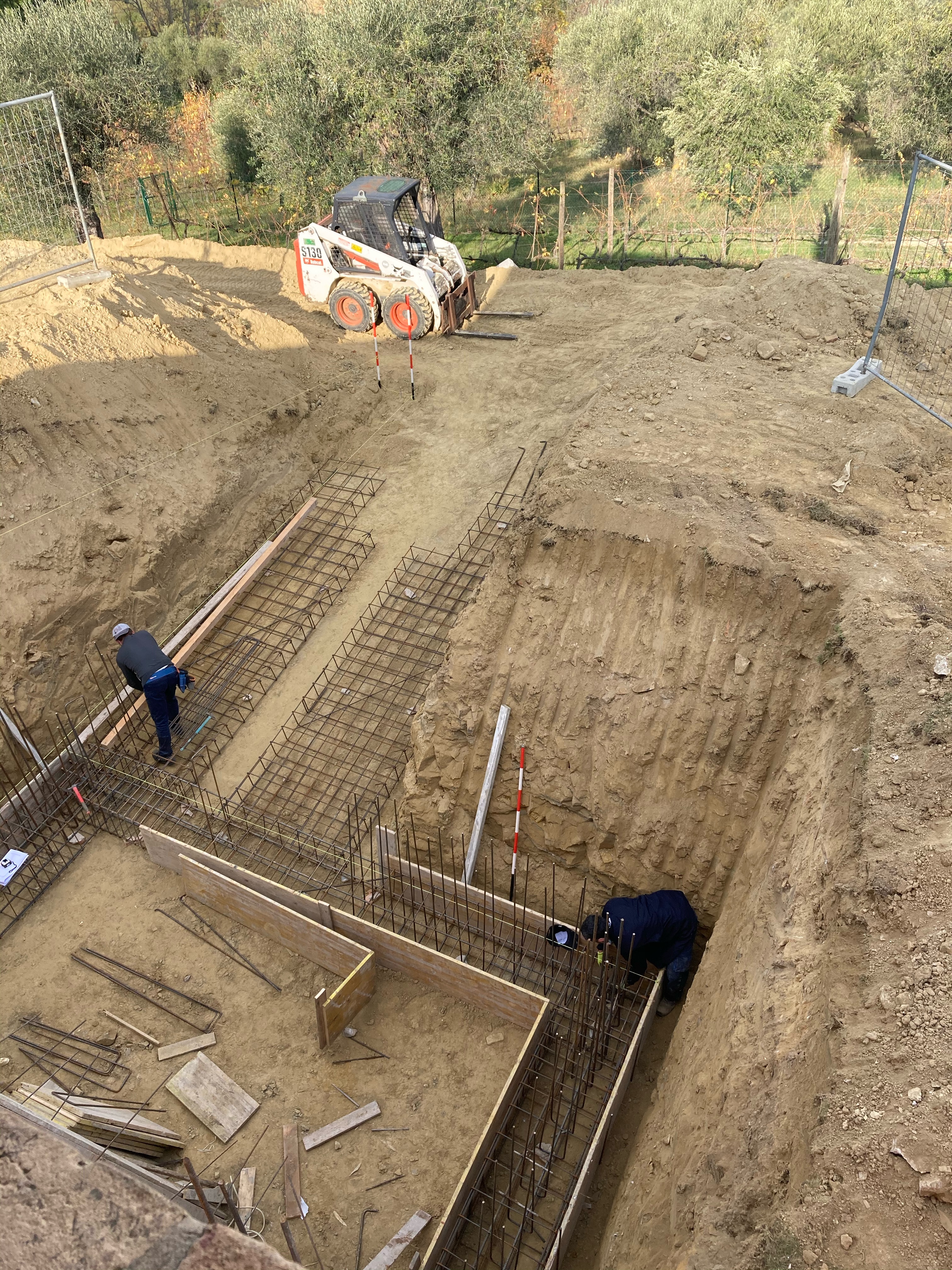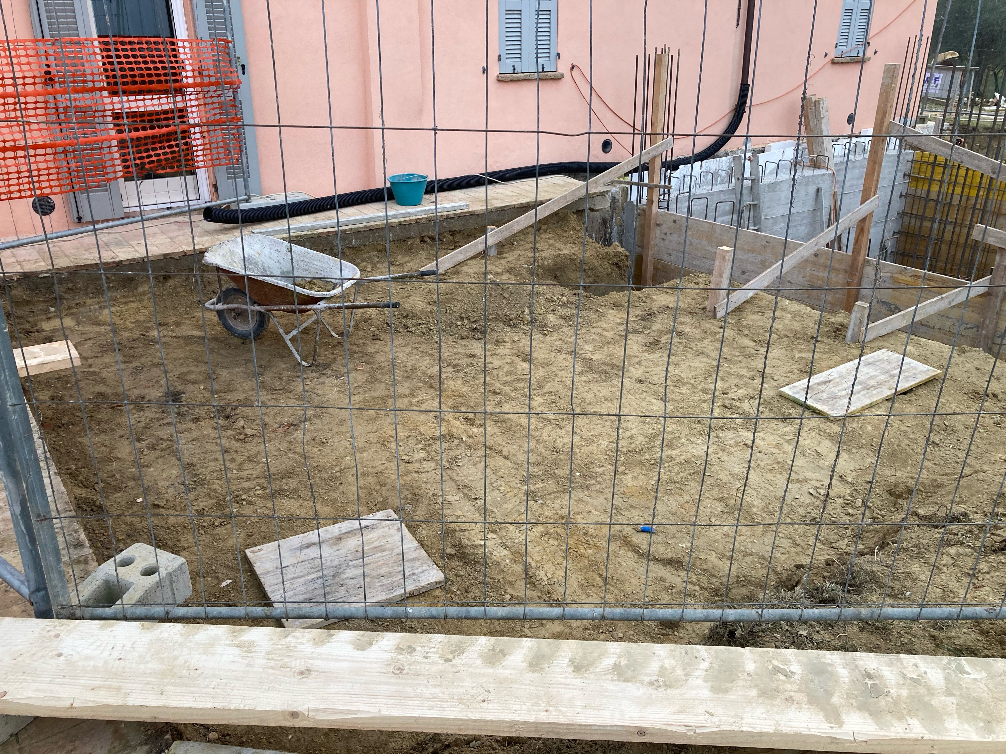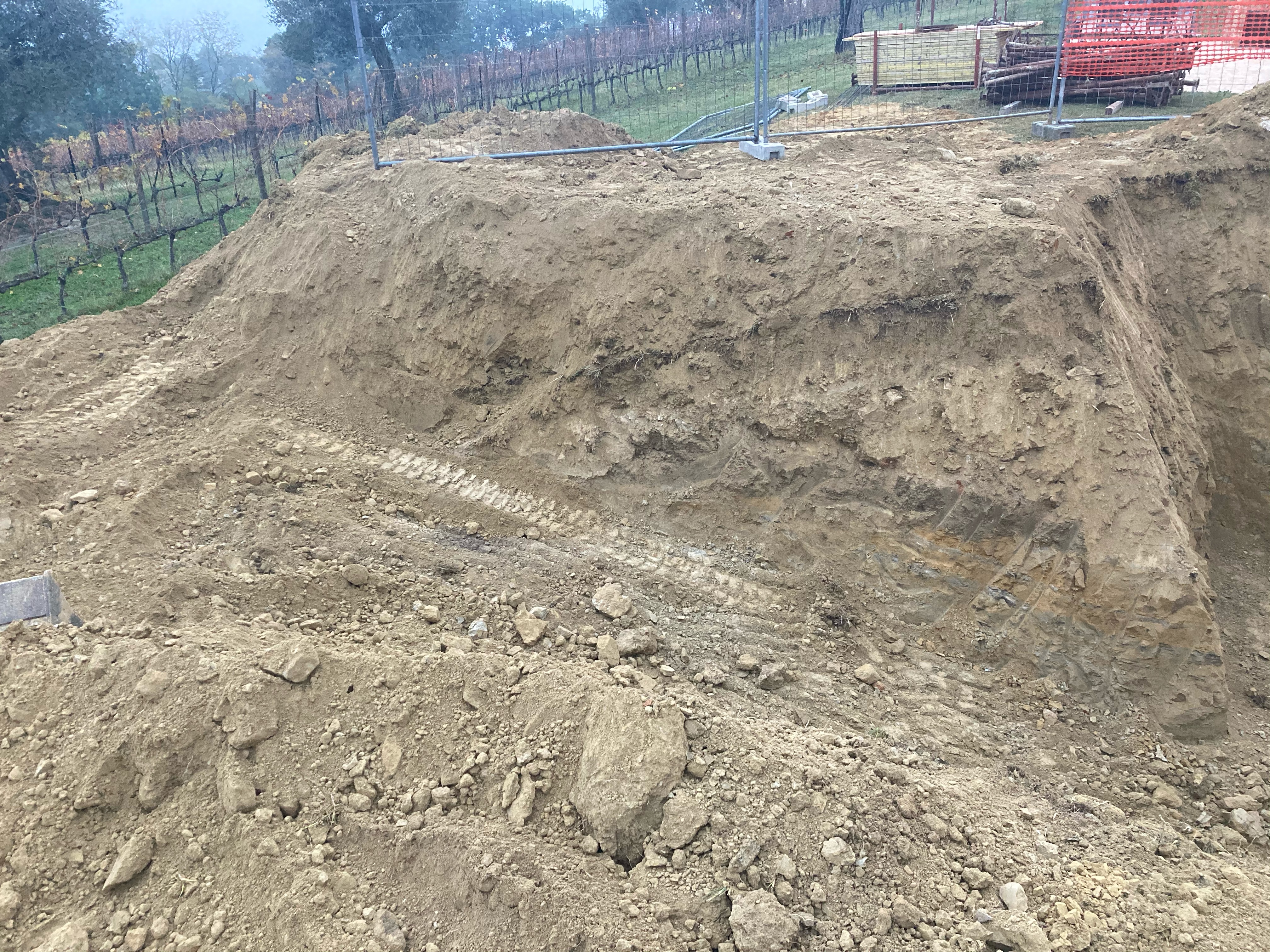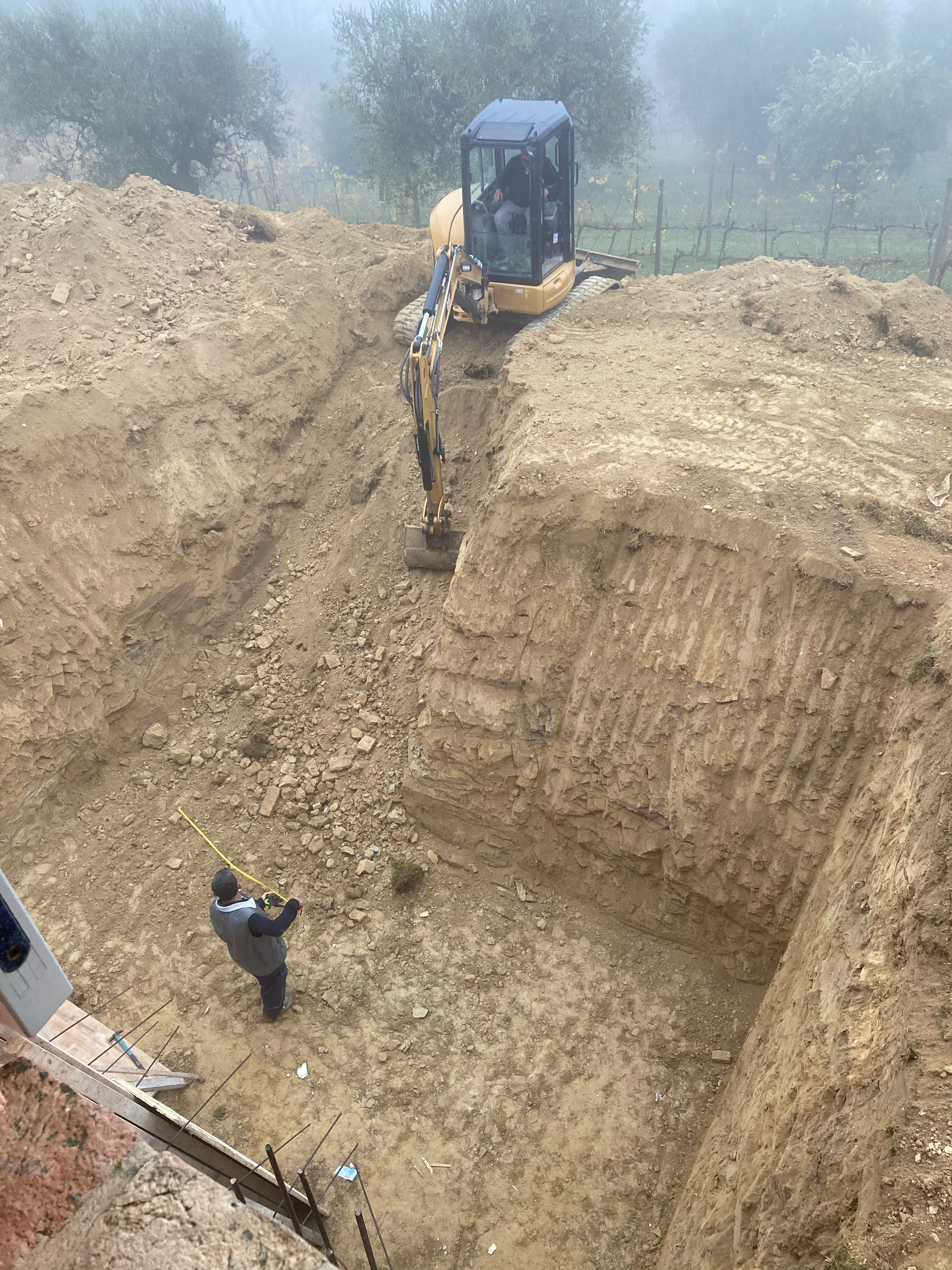 I know there is no such thing as half a hole, but we had one. The idea was to dig out half the space needed for the cantina, and use the wall of earth to support the new wall against the foundations of the house. Clever. As Gabriele the builder said “I’ve done this a few times before”.