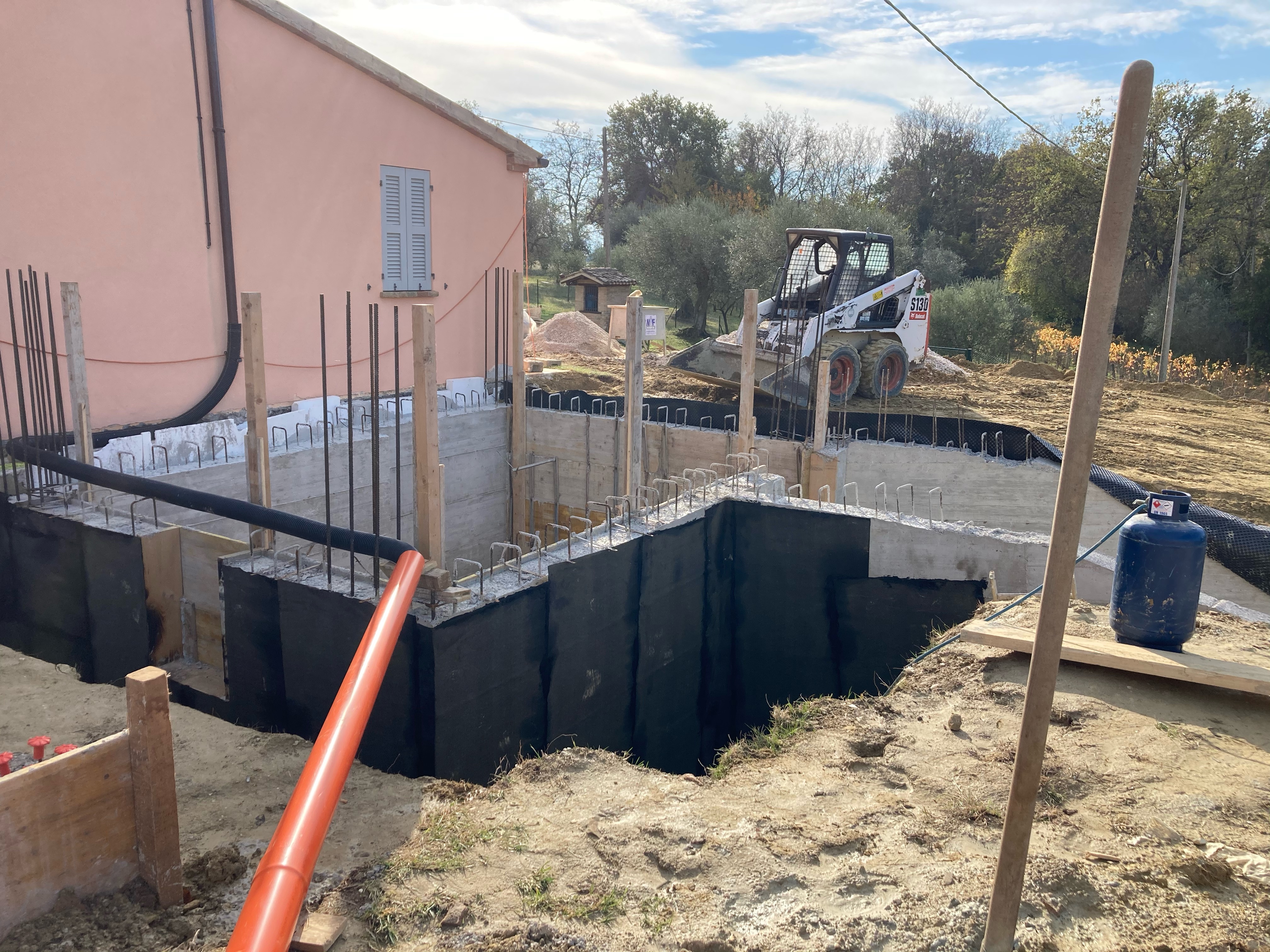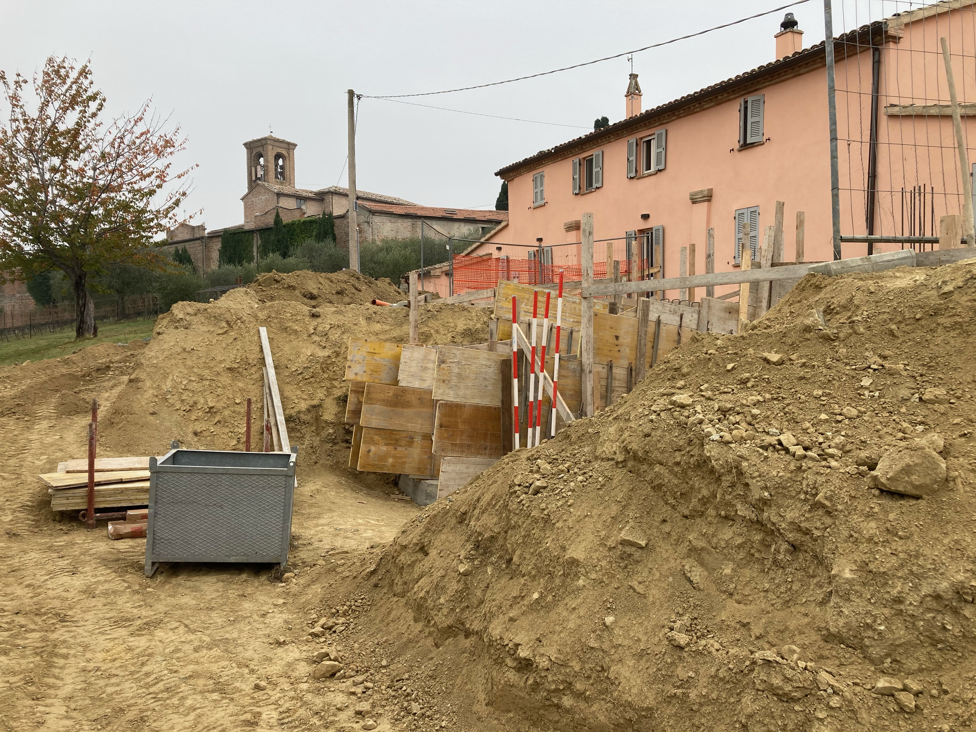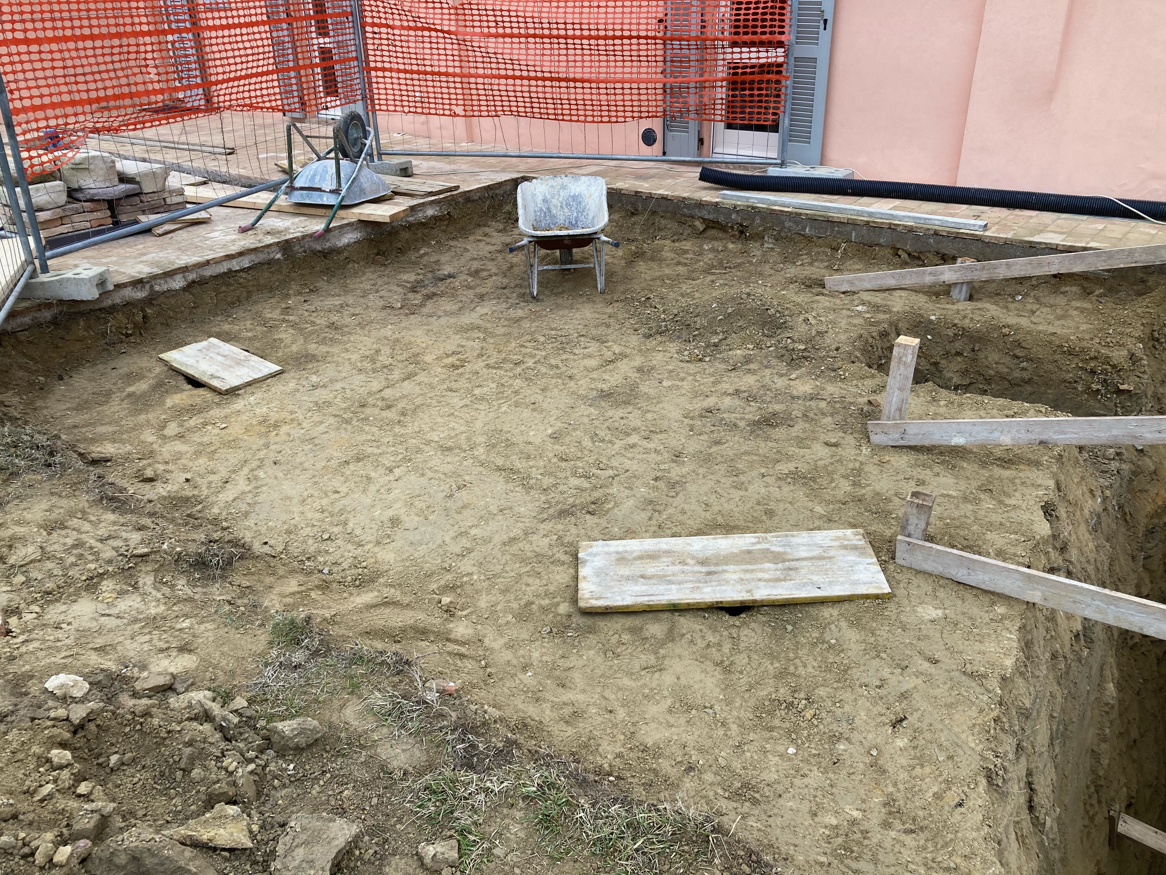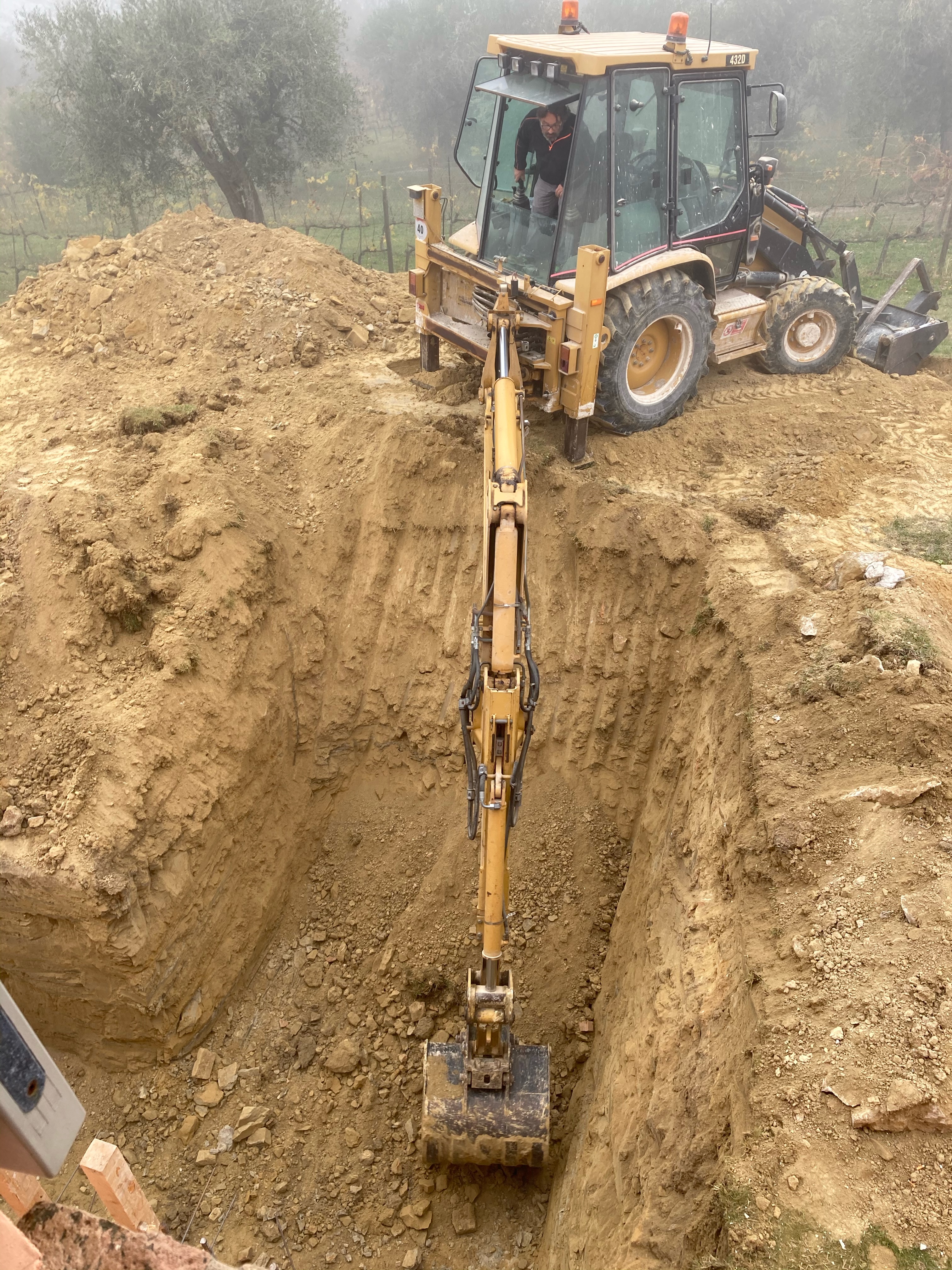 I know there is no such thing as half a hole, but we had one. The idea was to dig out half the space needed for the cantina, and use the wall of earth to support the new wall against the foundations of the house. Clever. As Gabriele the builder said “I’ve done this a few times before”.