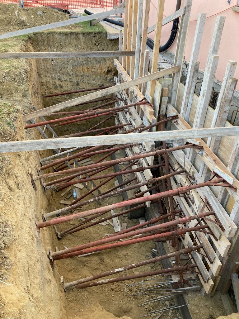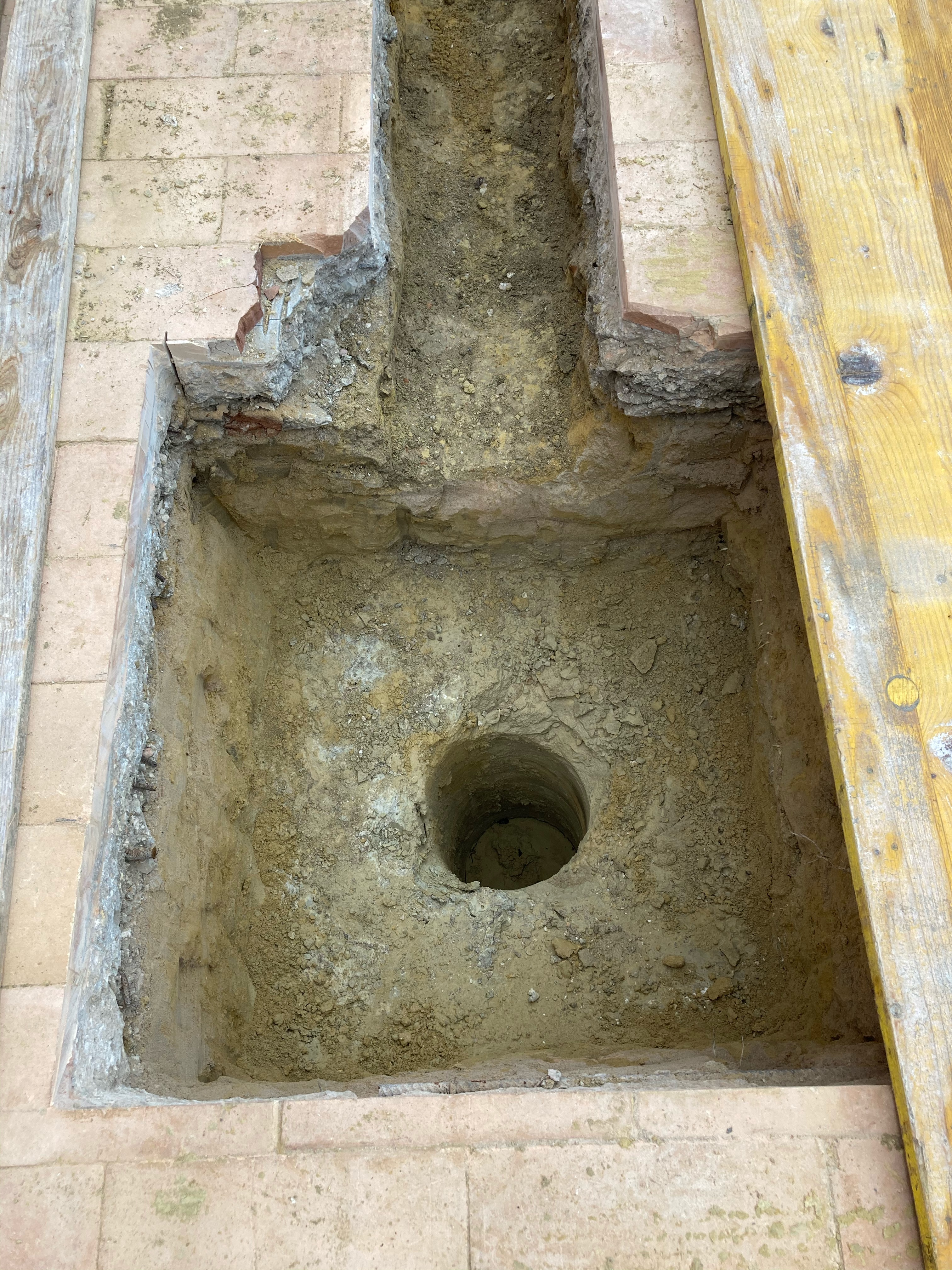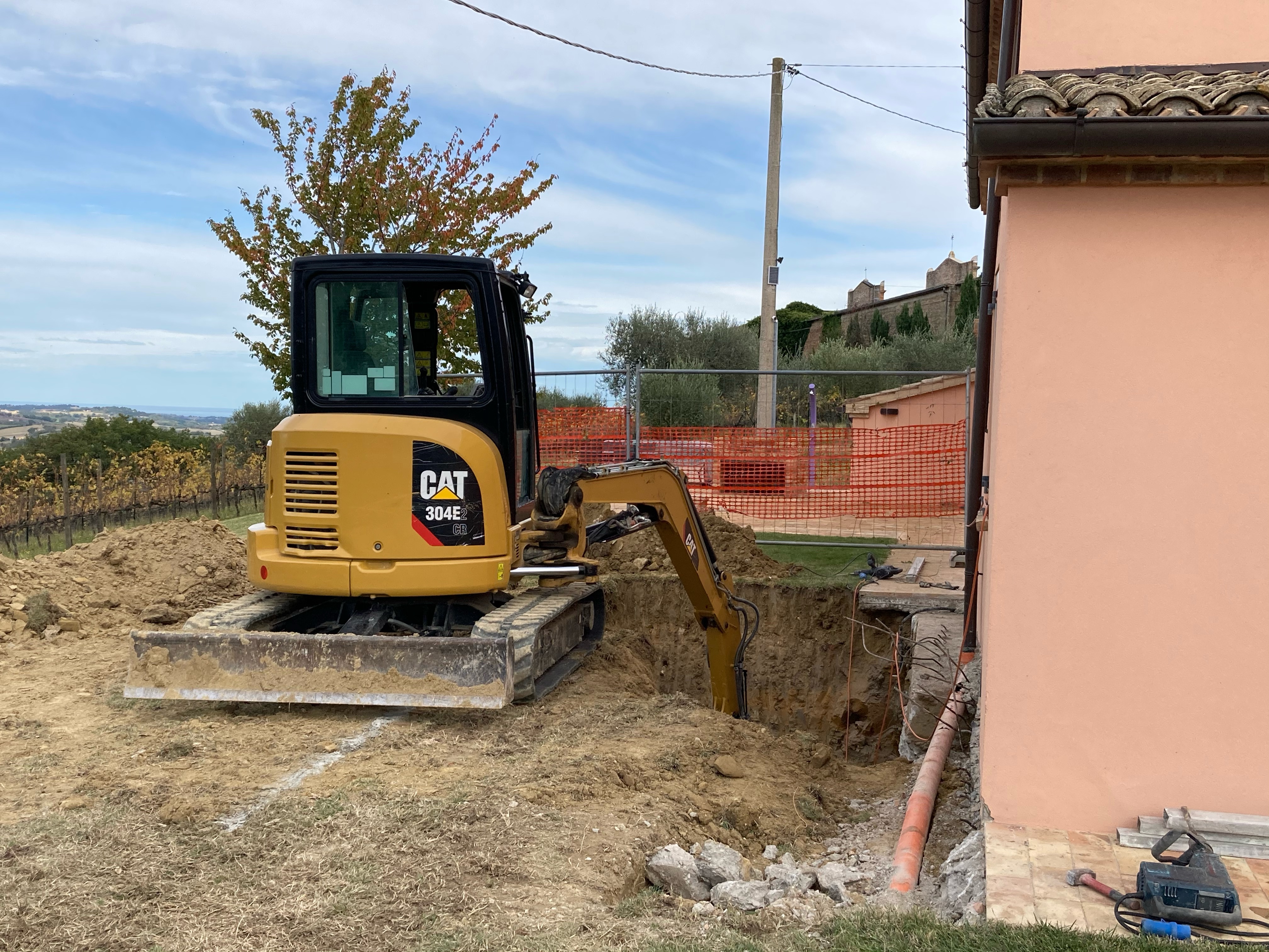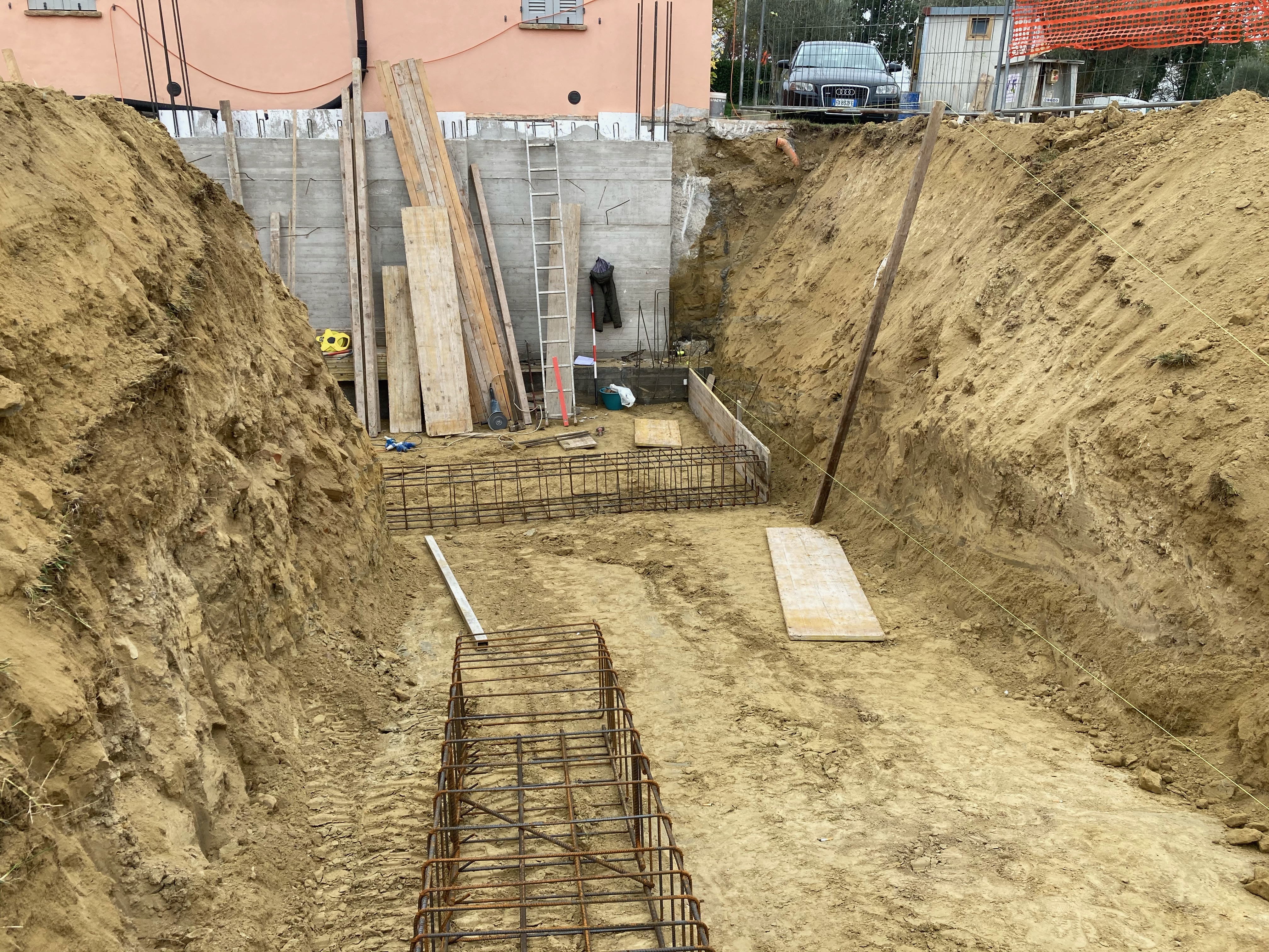 I know there is no such thing as half a hole, but we had one. The idea was to dig out half the space needed for the cantina, and use the wall of earth to support the new wall against the foundations of the house. Clever. As Gabriele the builder said “I’ve done this a few times before”.