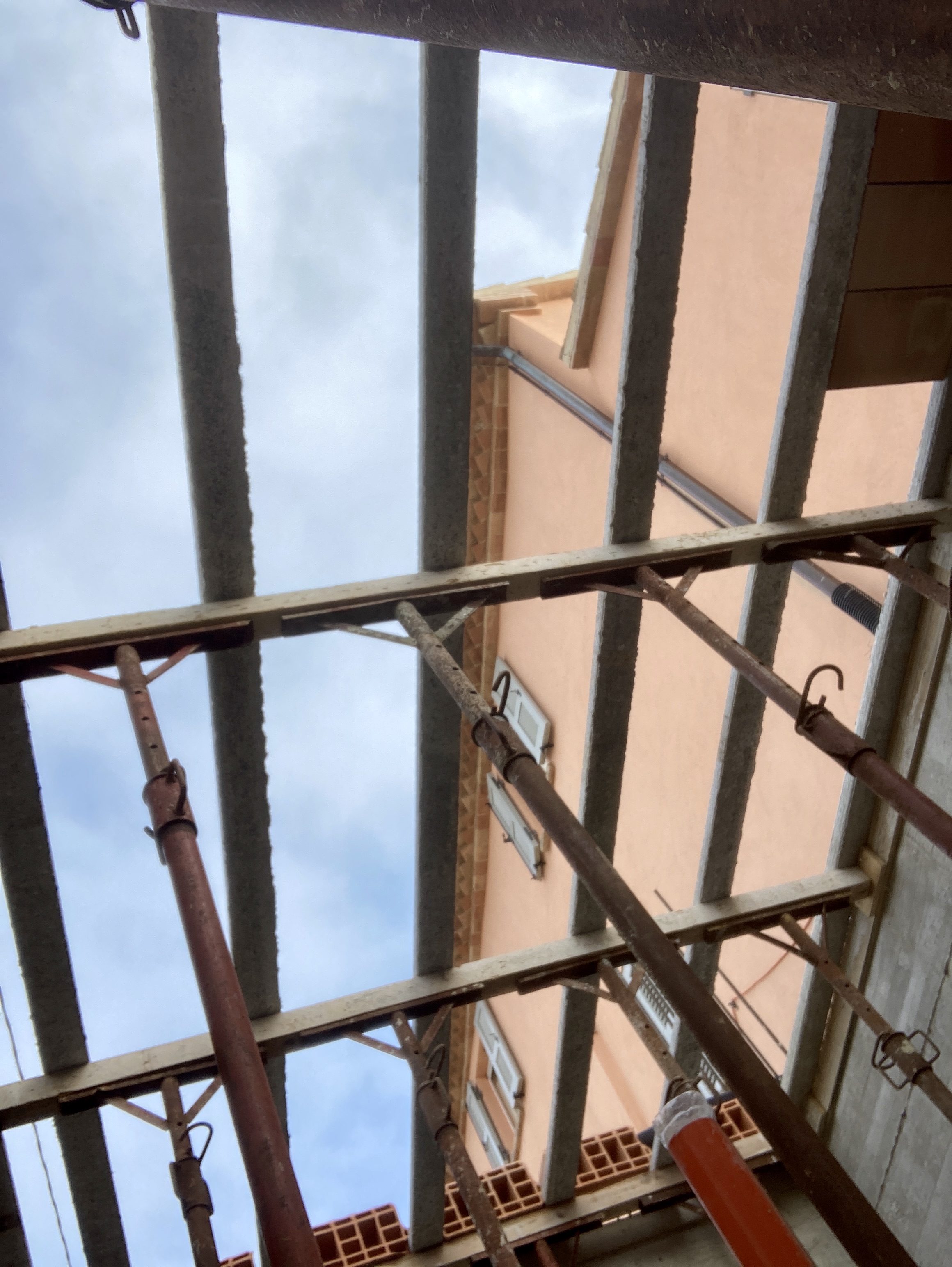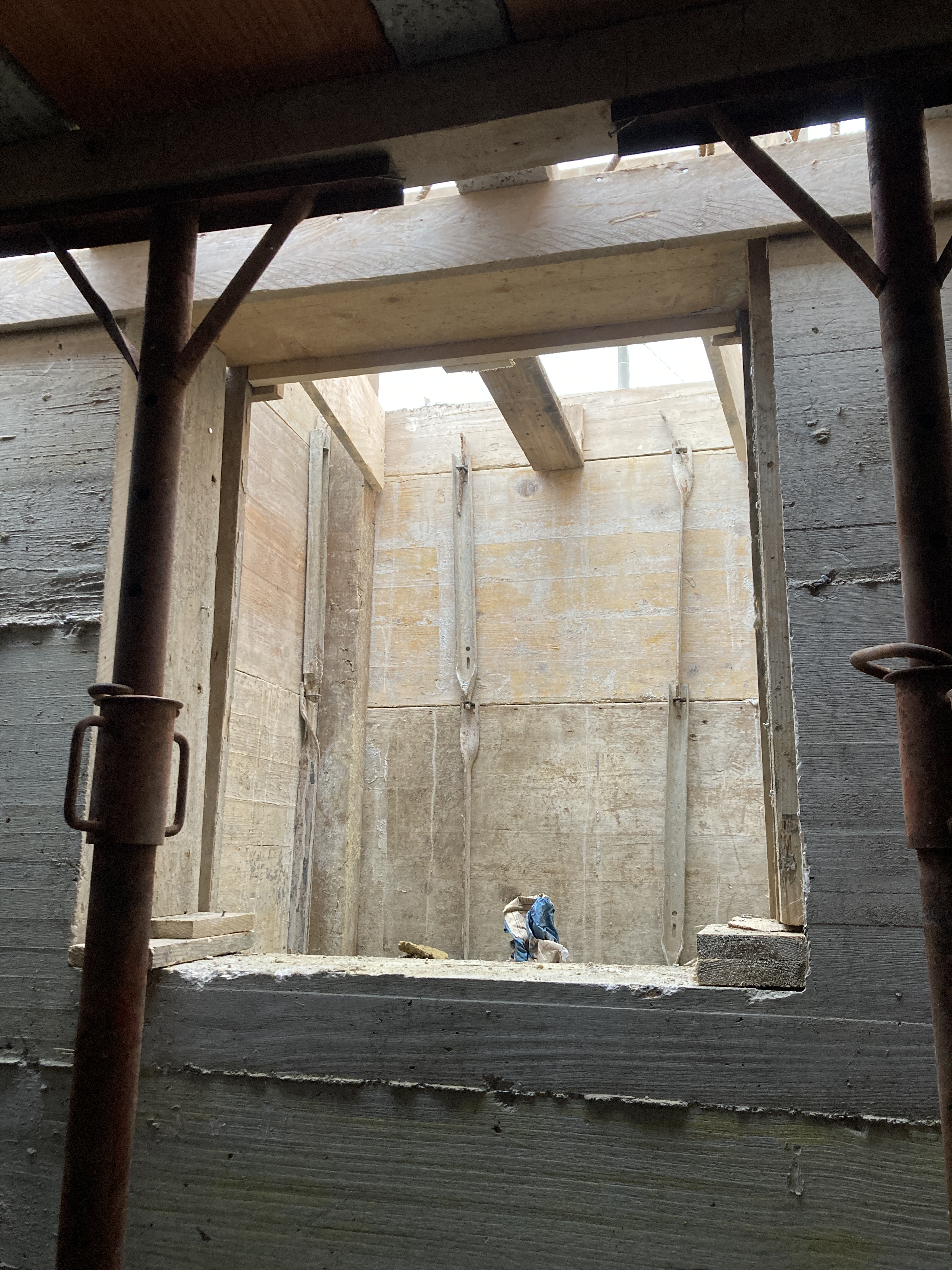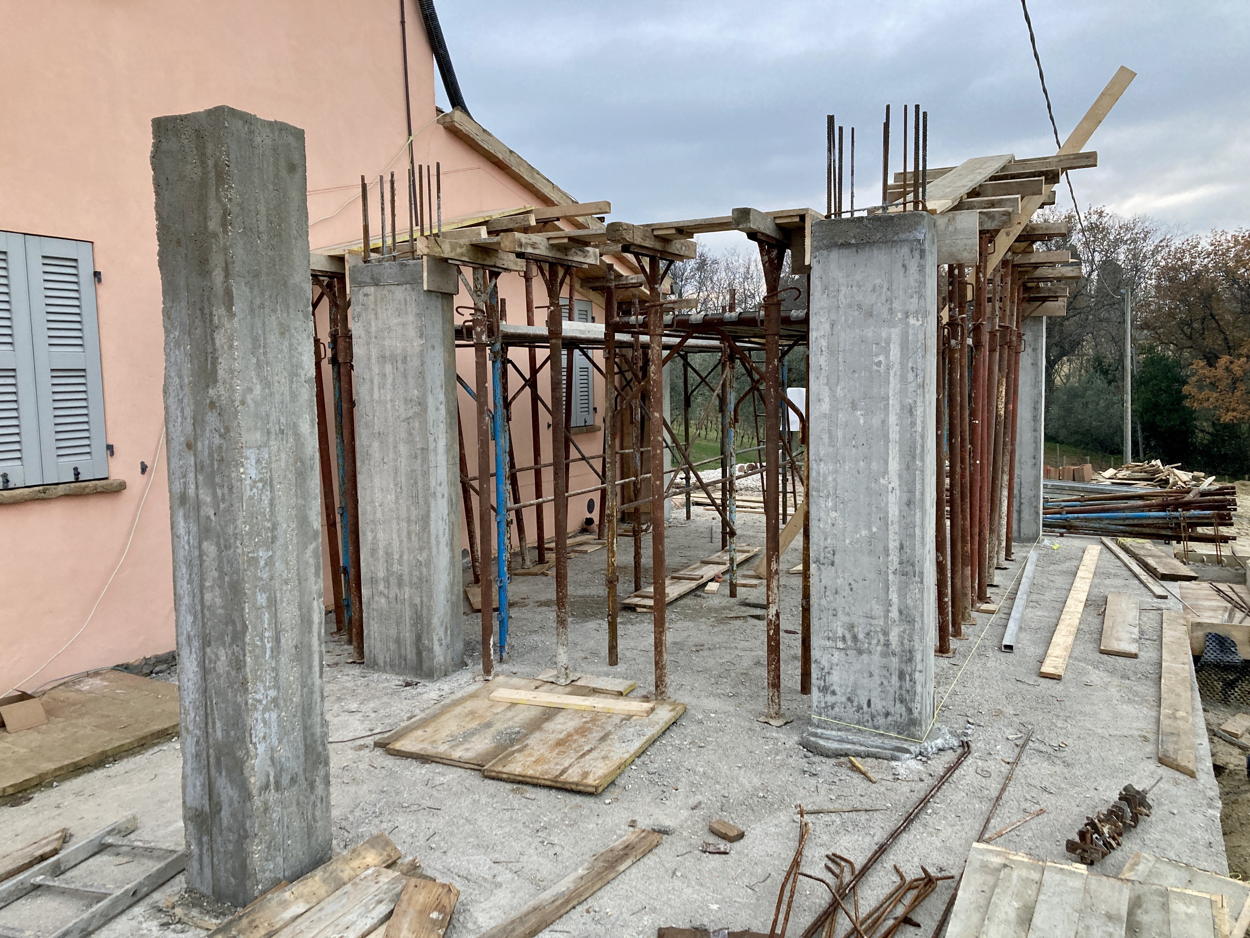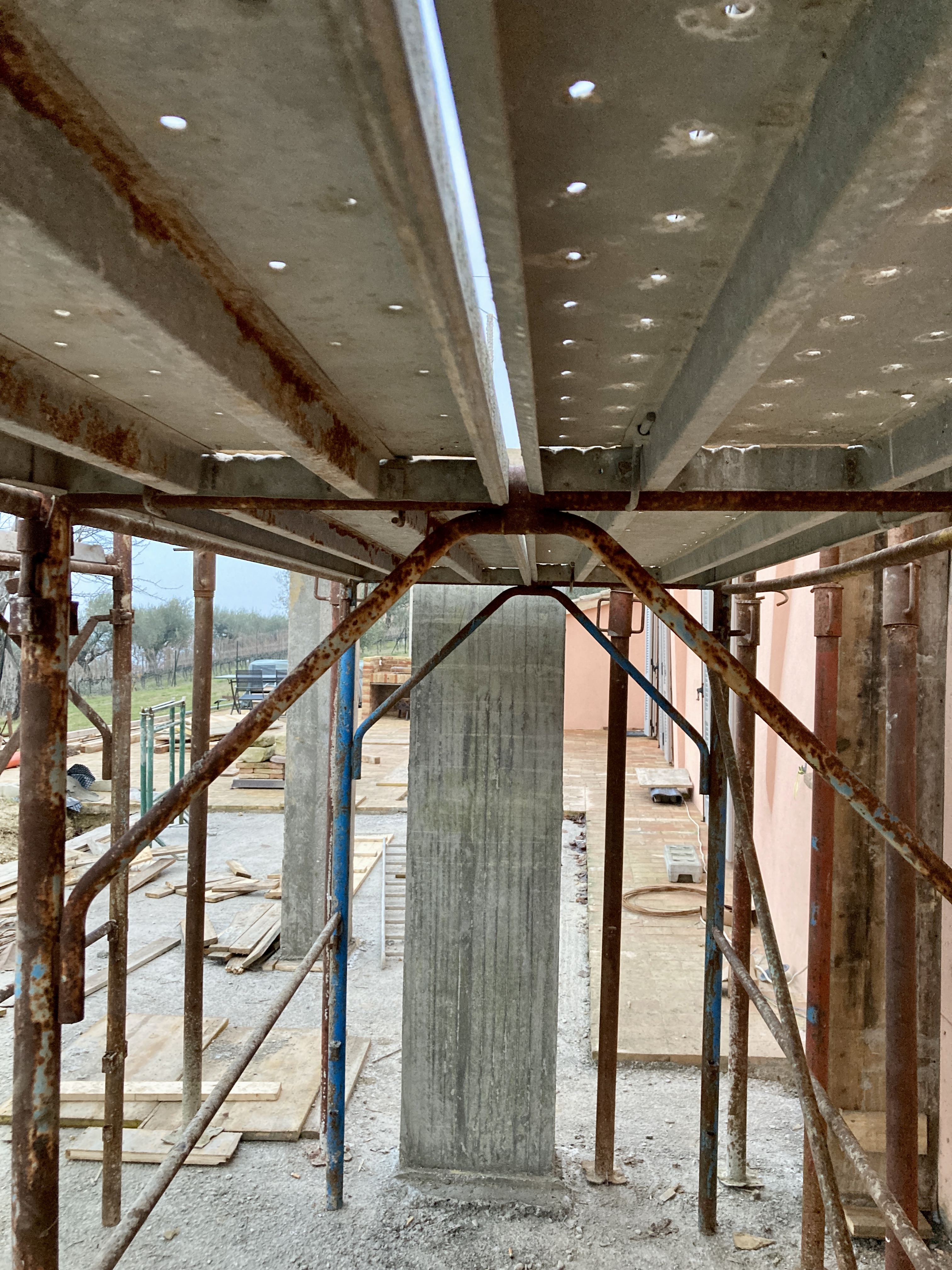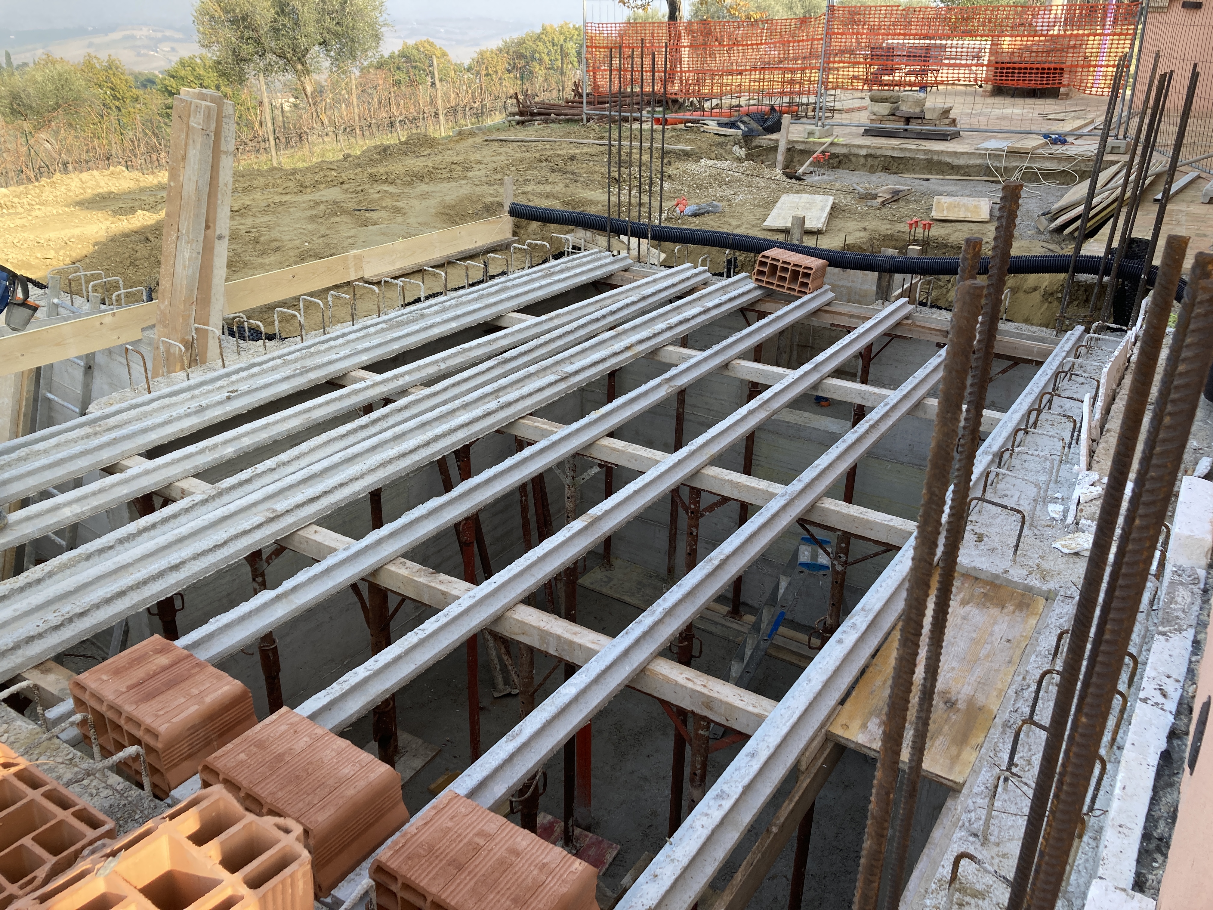This was a consequence of having to build the cantina 65cm further out that planned (remember our day 2 decision). No one spotted the consequence for the door. A good job we were paying attention. Gabriele took it all in his stride. He convened an onsite meeting between us, Sauro the geometra, and the engineer. We asked why a support pillar couldn’t be keyed into the house. It turned out that’s not possible as we’re in an earthquake zone. The two new structures have to move separately from the house. They came up with an alternative solution, to move the support pillar away from the house to allow room for the door. That was extra work of course.