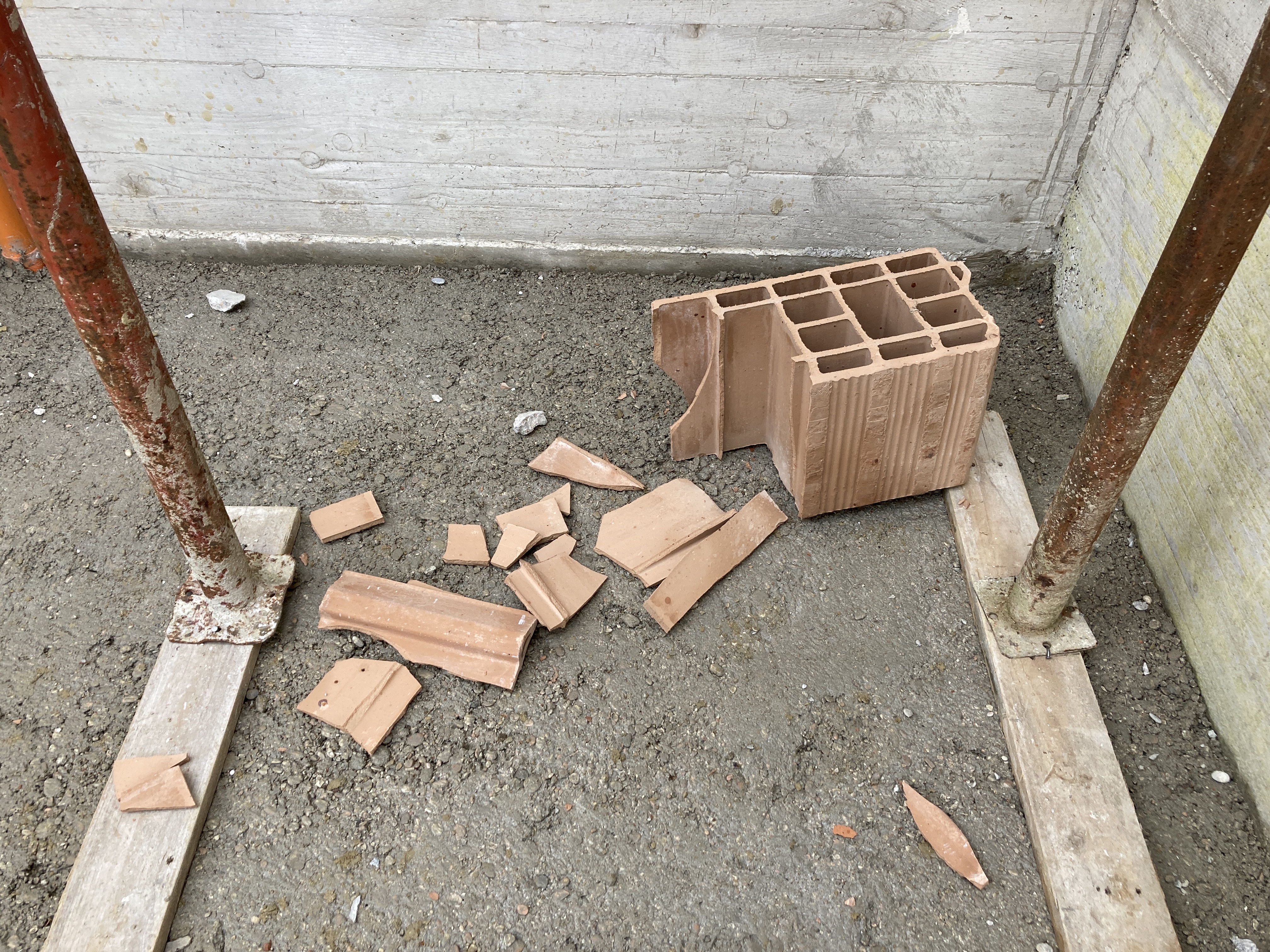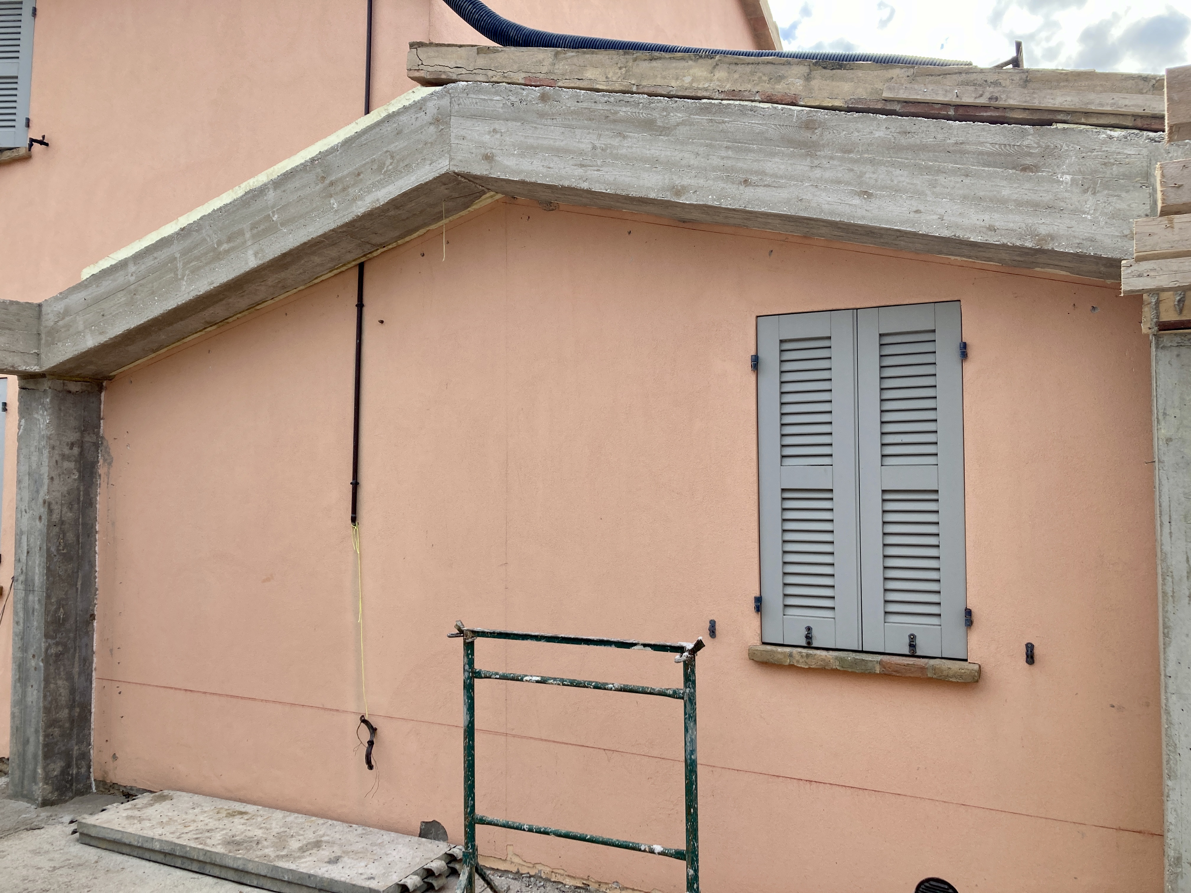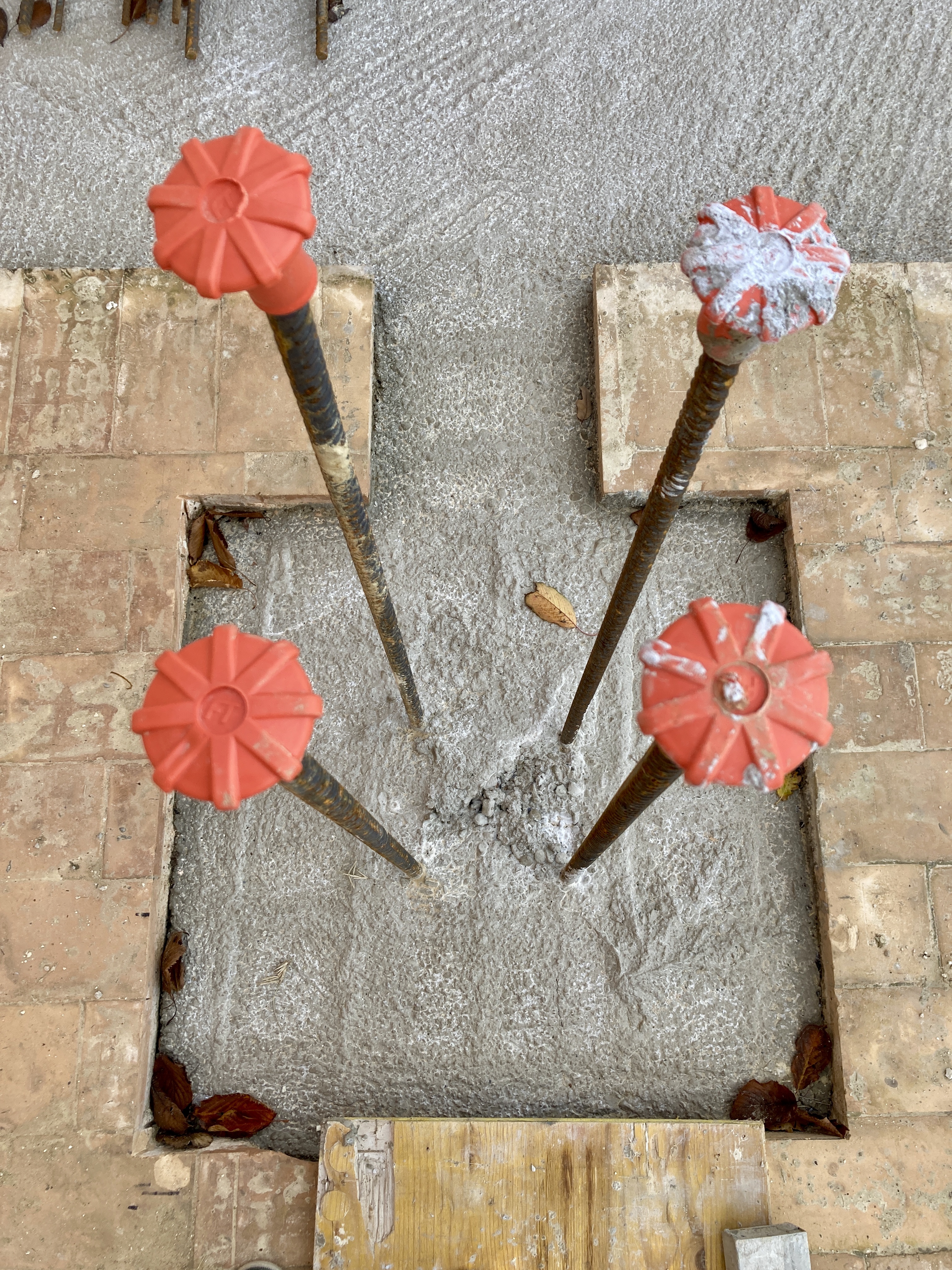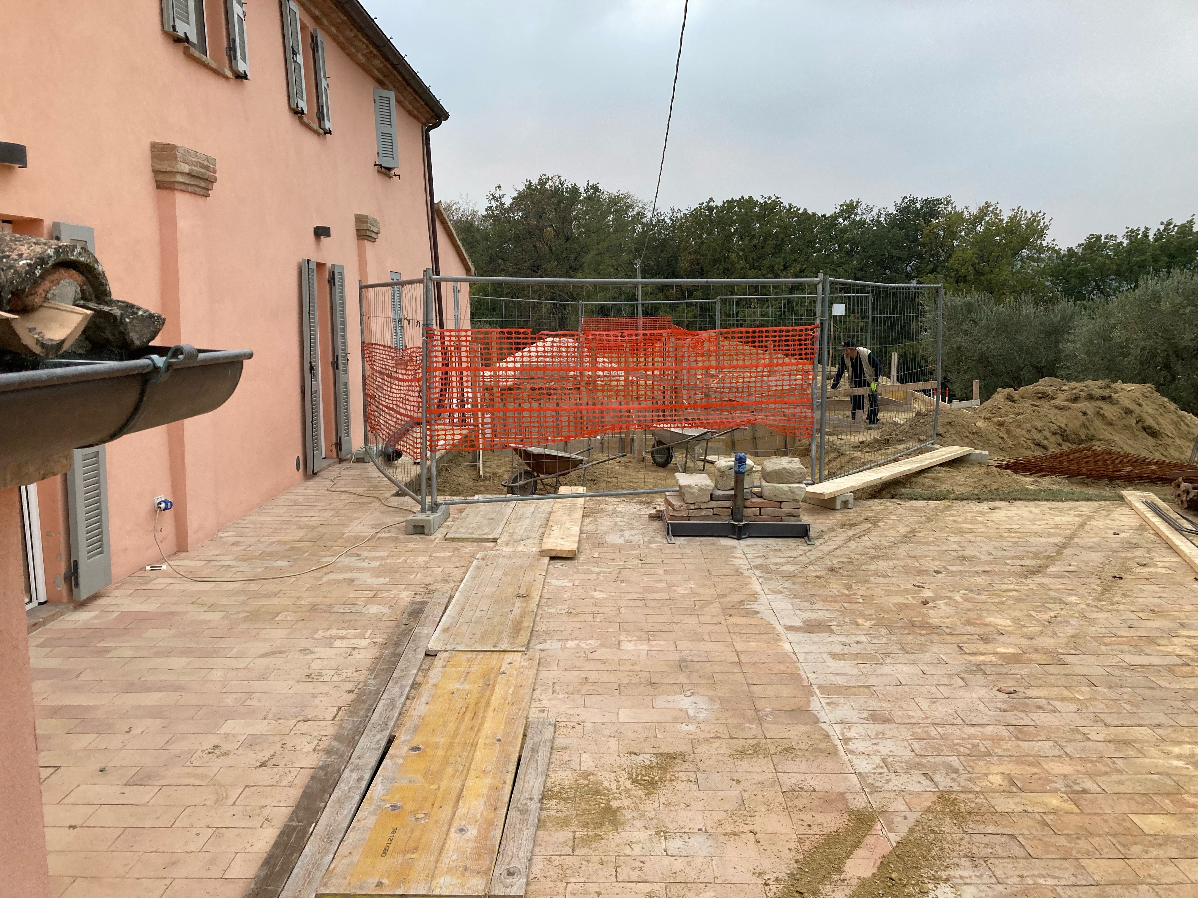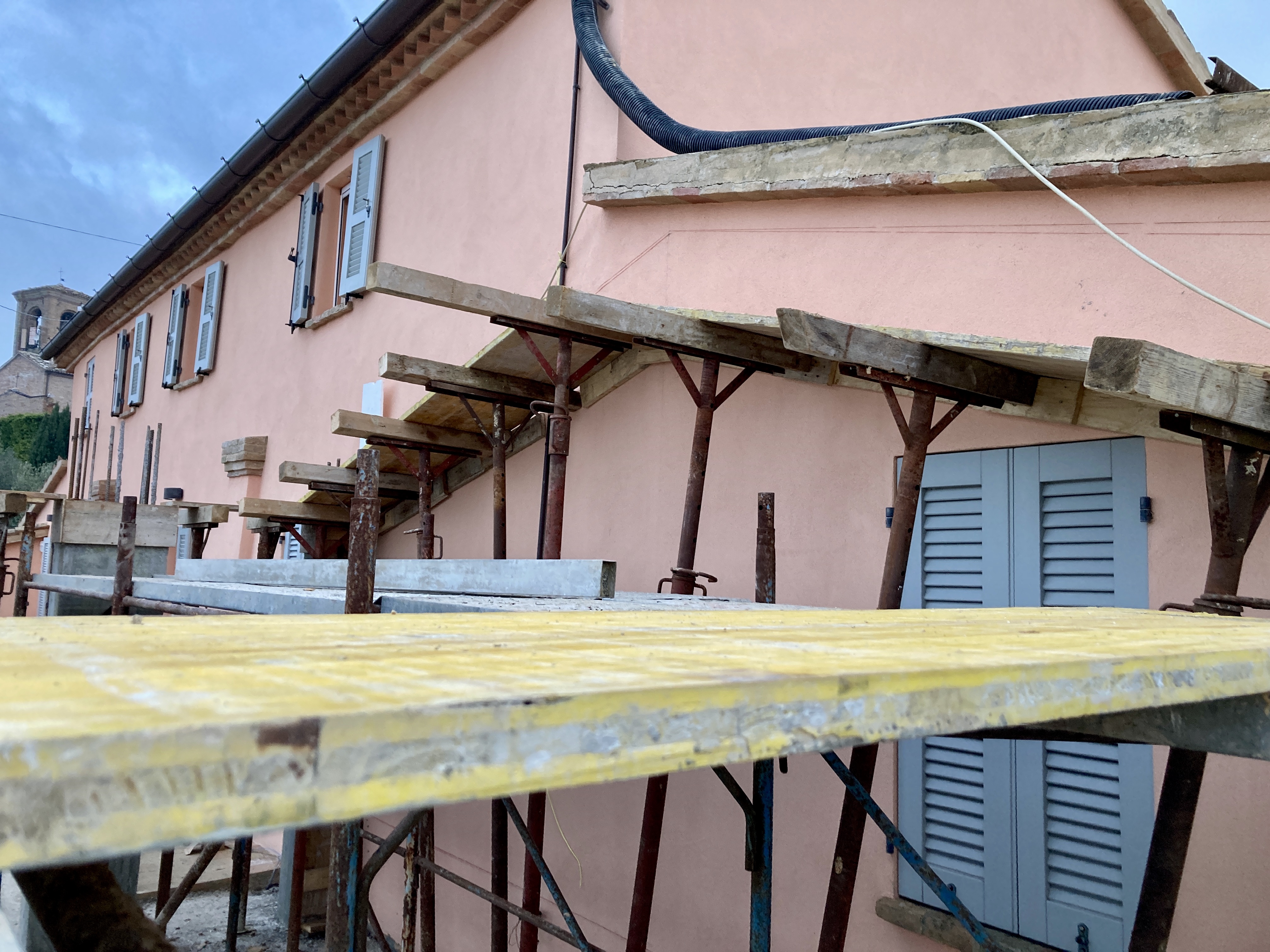 This was a consequence of having to build the cantina 65cm further out that planned (remember our day 2 decision). No one spotted the consequence for the door. A good job we were paying attention. Gabriele took it all in his stride. He convened an onsite meeting between us, Sauro the geometra, and the engineer. We asked why a support pillar couldn’t be keyed into the house. It turned out that’s not possible as we’re in an earthquake zone. The two new structures have to move separately from the house. They came up with an alternative solution, to move the support pillar away from the house to allow room for the door. That was extra work of course.