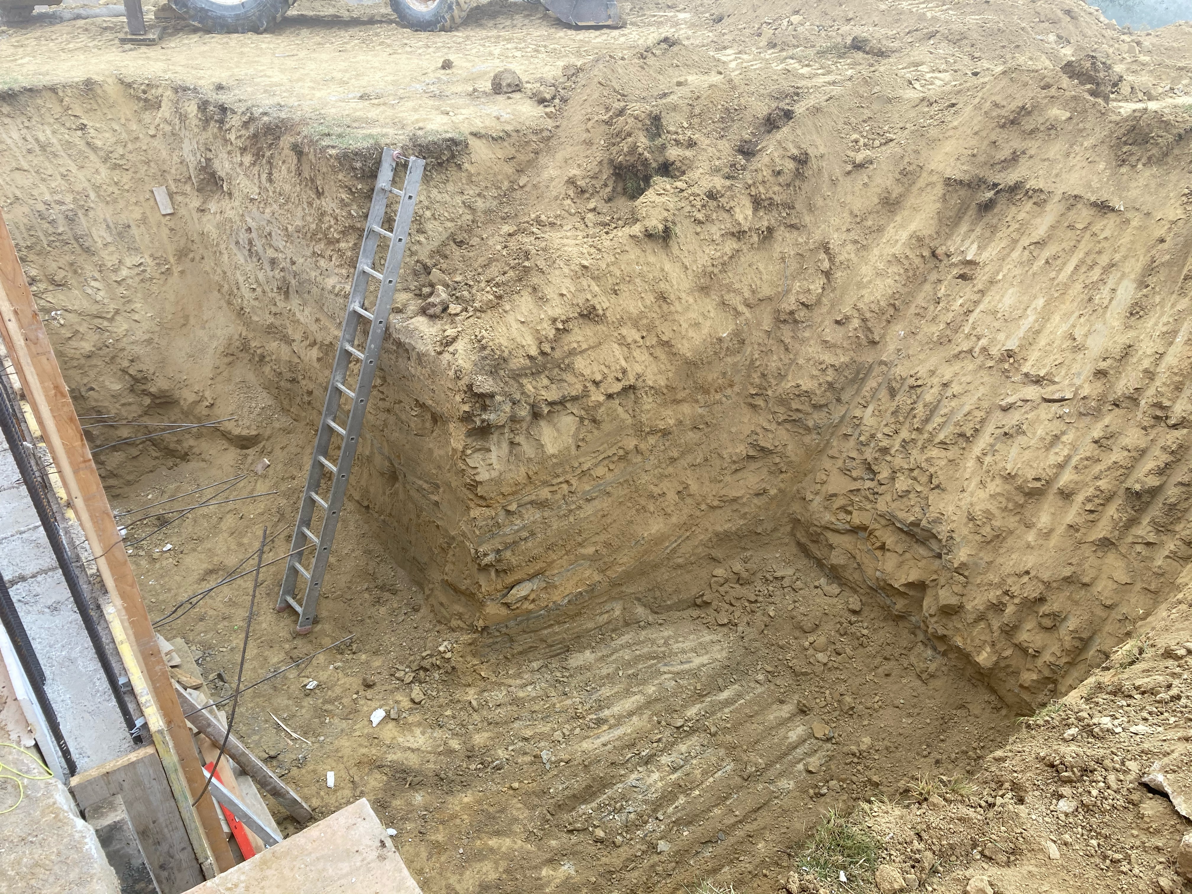 By end of light on Friday there was just a suspicious one hour of work left to do before concreting. I suspect they were making a point! They’d also dug out the three holes ready for the supports for the portico.