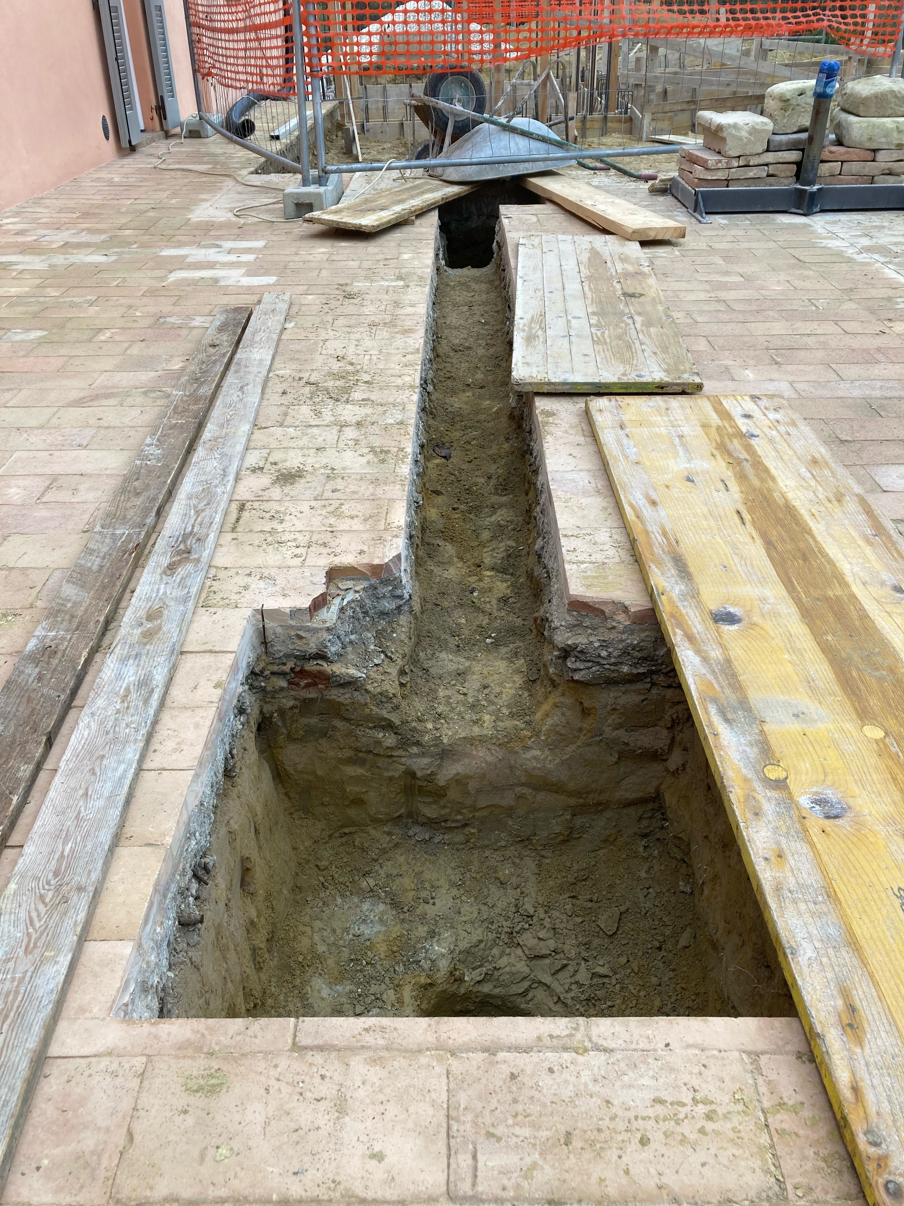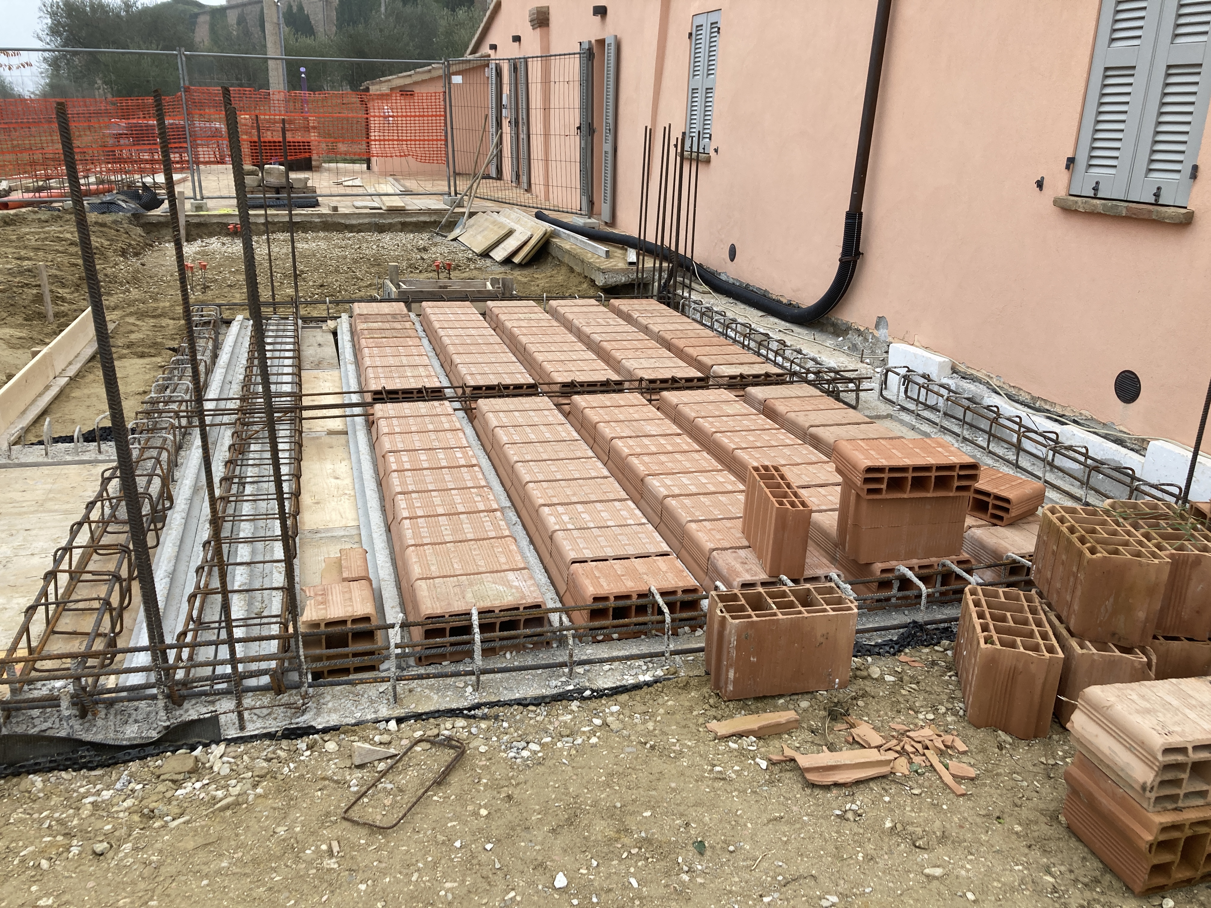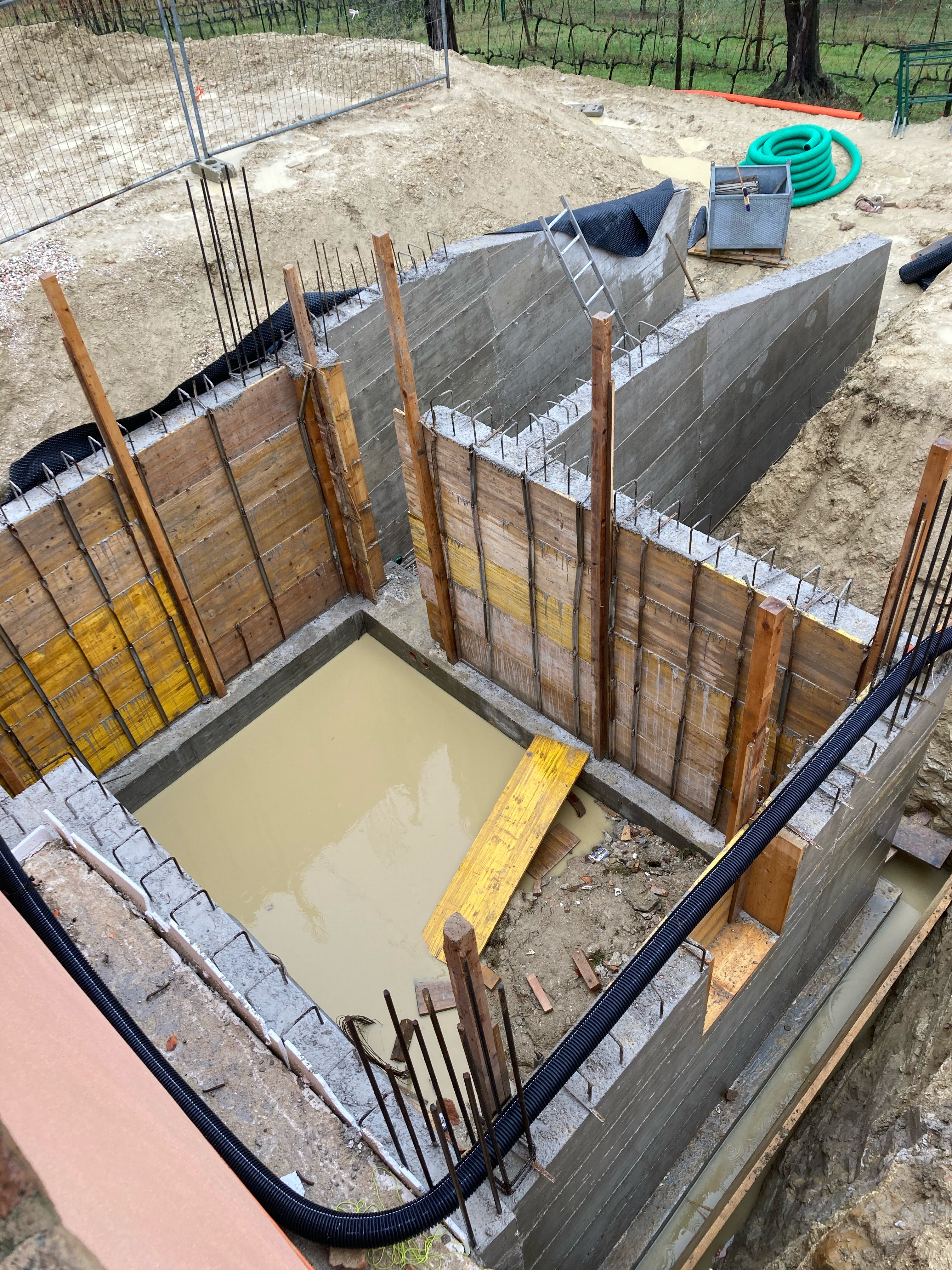 Sauro advised that the foundations meant we had to either lose 65cm along the 5m wall or build the whole underground cantina 65cm further into the garden and adjust the plans accordingly. We opted for preserving the space as we thought we’d always resent losing it.