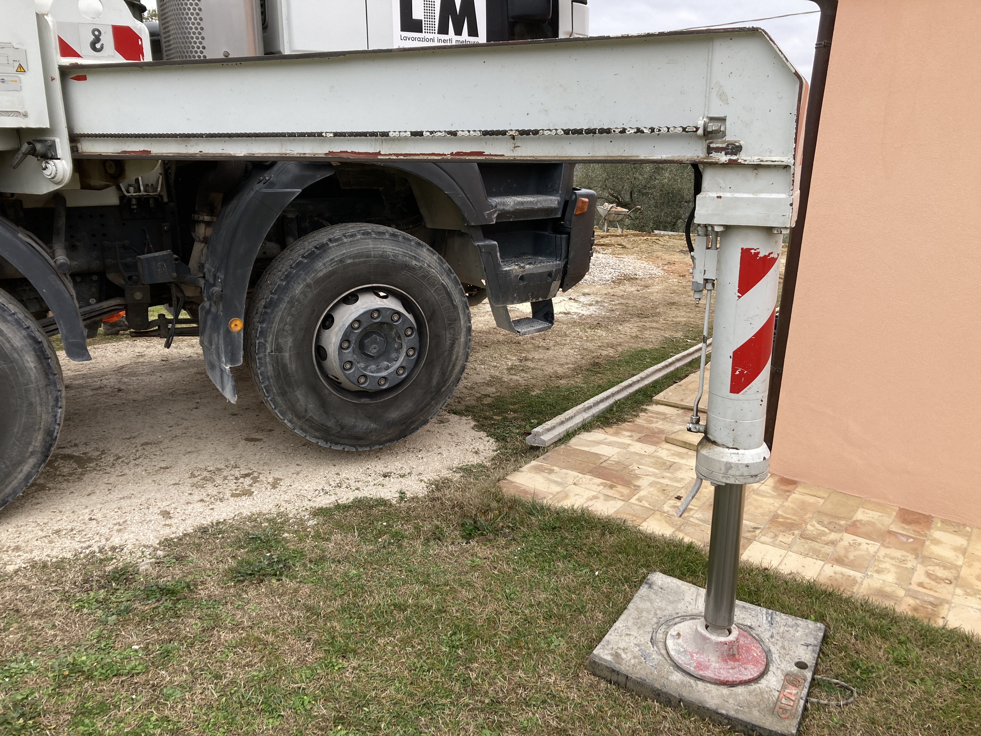 On Tuesday Jan had a trip down memory lane. The cement lorry took some samples in mid flow. These blocks of concrete are sent for testing to show the correct mix has been used. Many years ago Jan worked as a concrete tester, using very similar blocks. In her day the blocks were in greased metal containers and had to be hammered on the bottom to get the concrete out. Italian workers are always confounded when a woman knowledgeably asks them about their concrete mix.