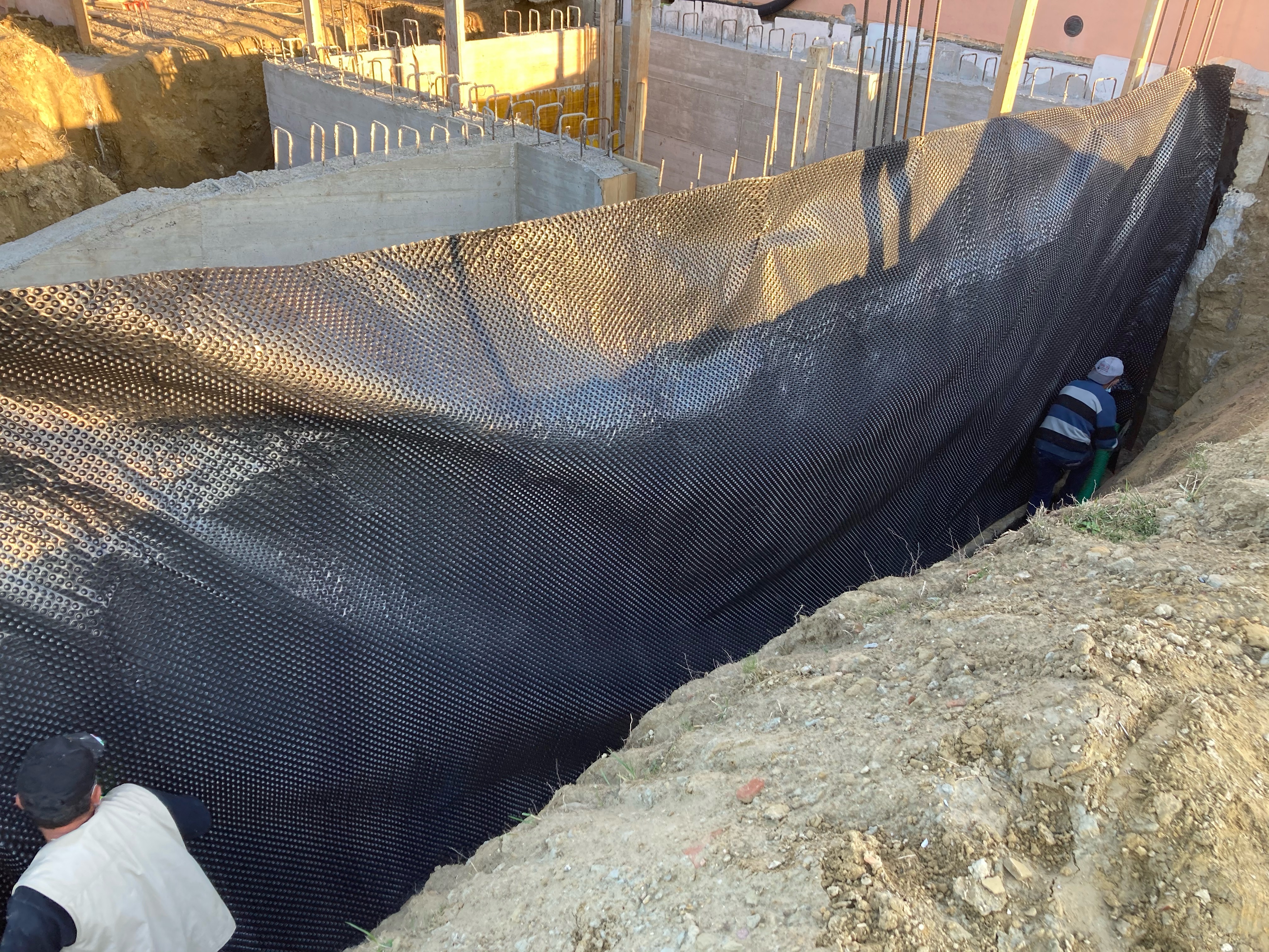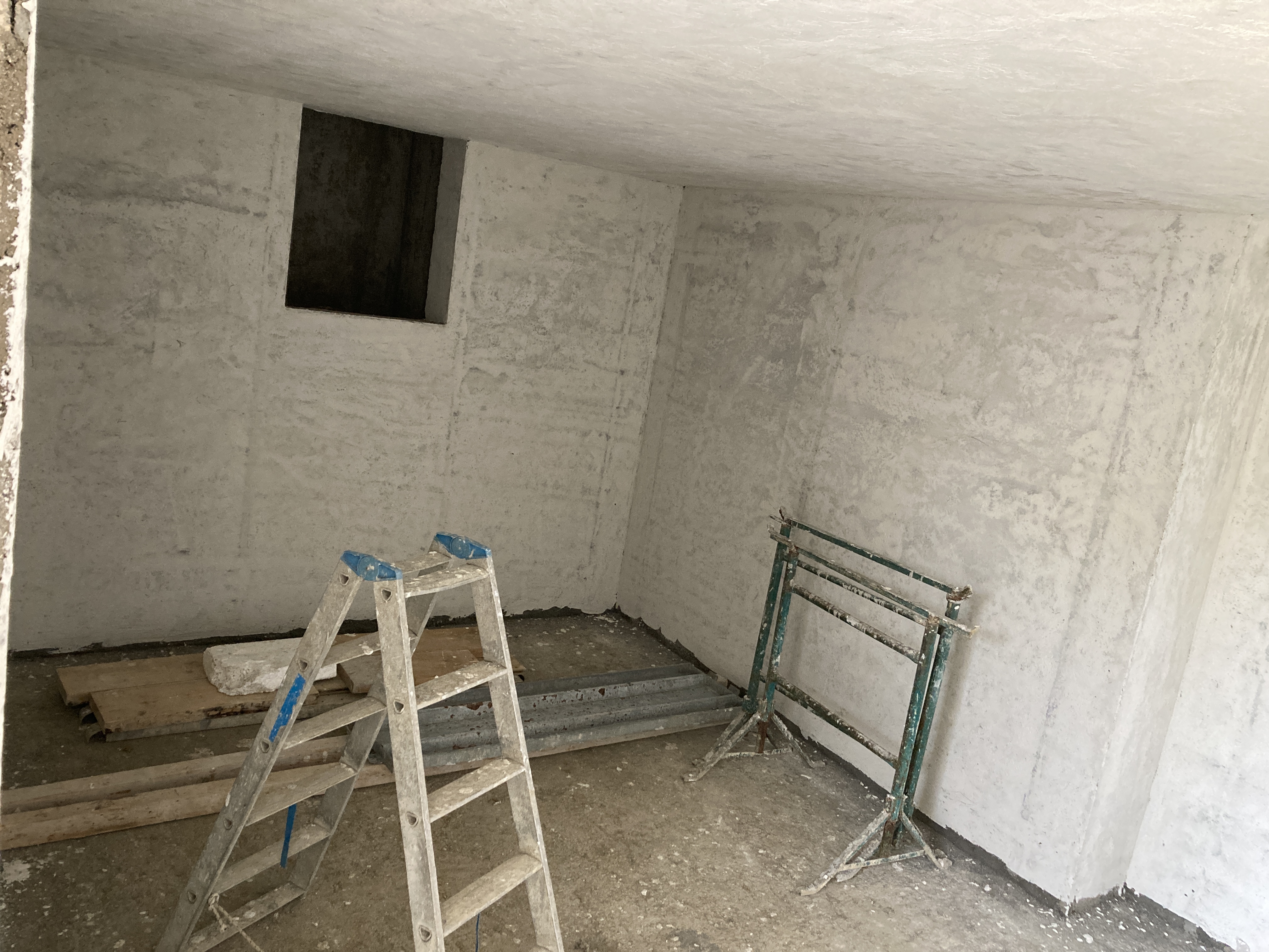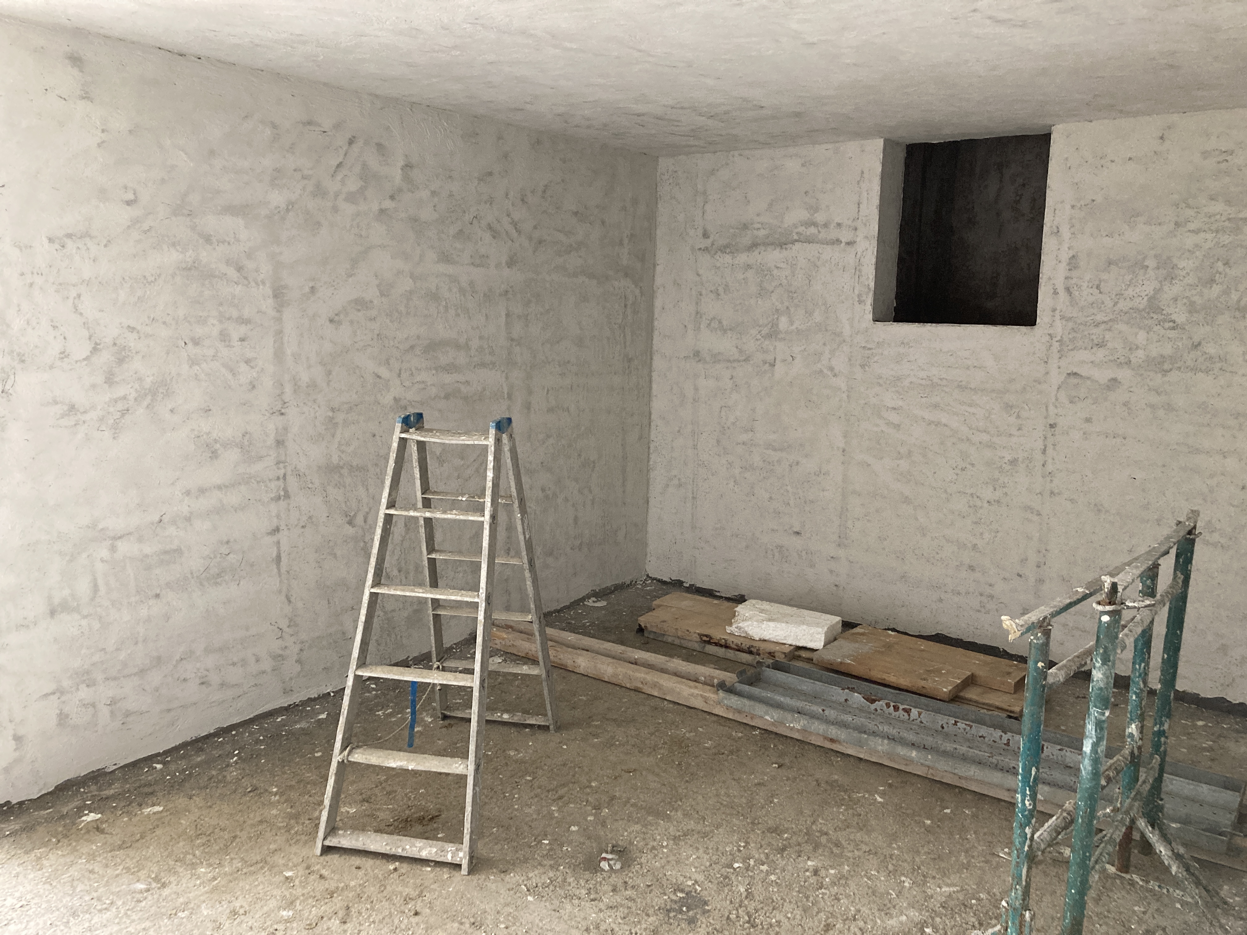 Next was applying a DPC to the external walls, a layer of industrial ‘bubble wrap” to stop stones piercing the DPC and put the soil back around the cantina.