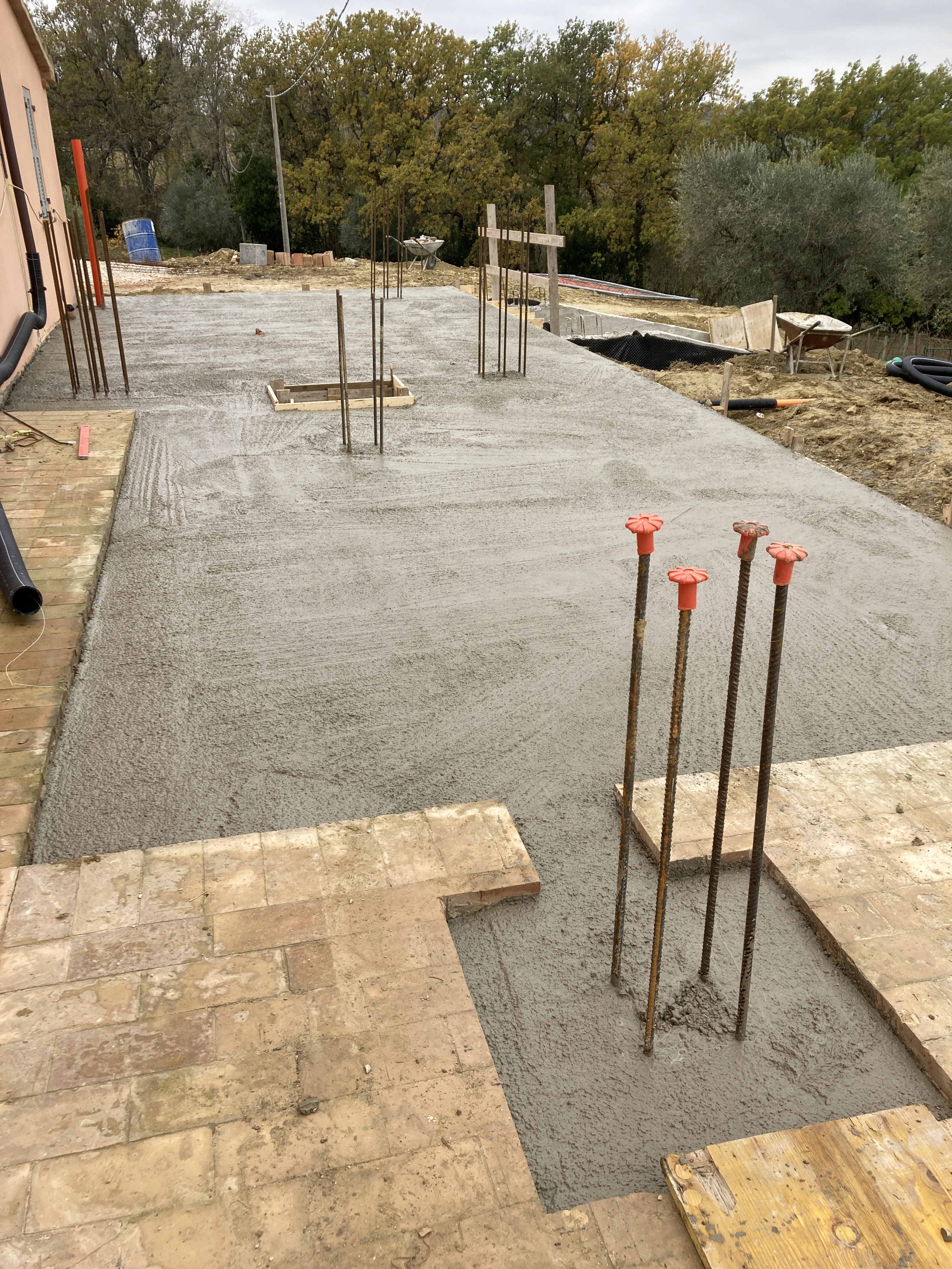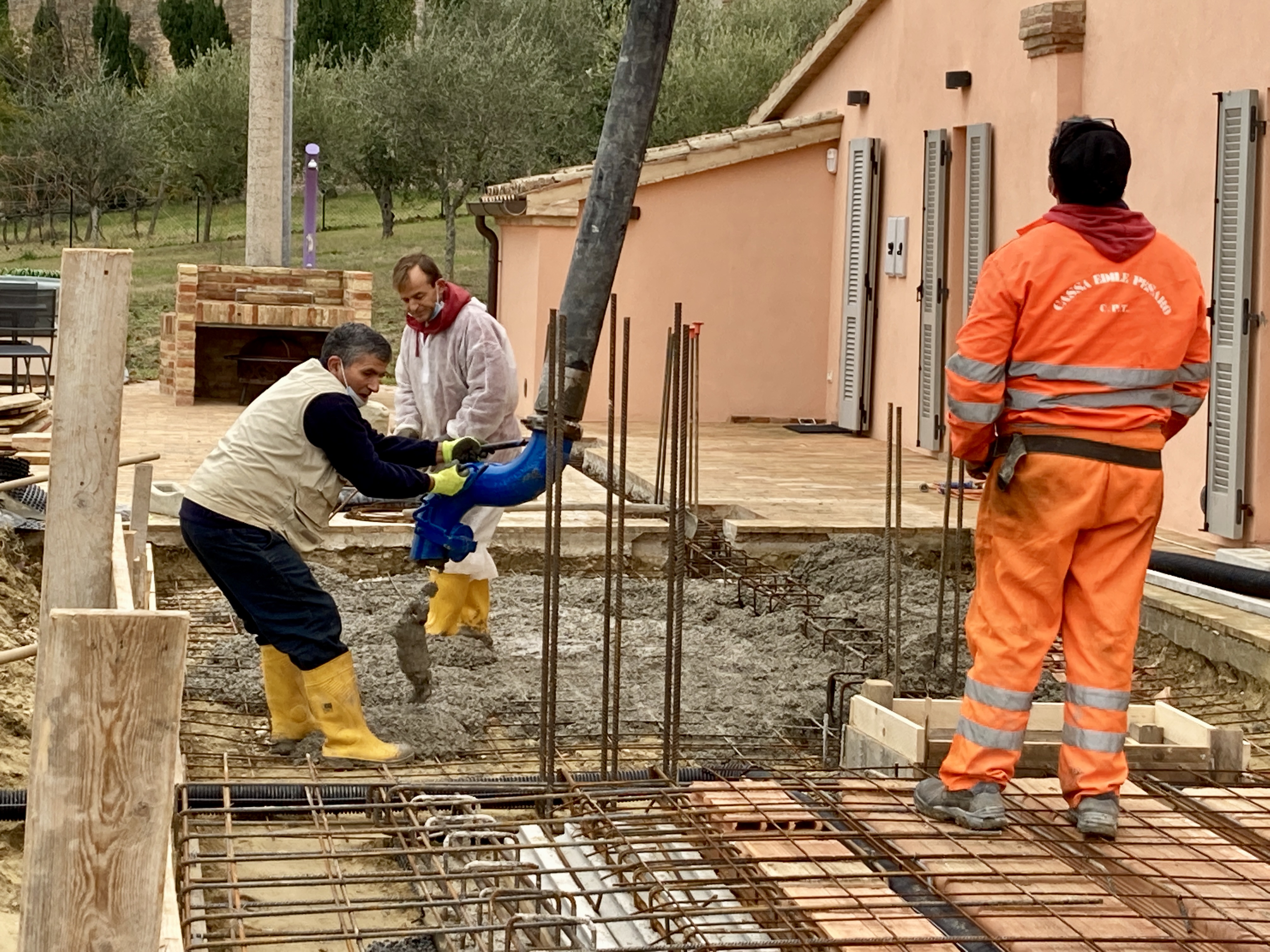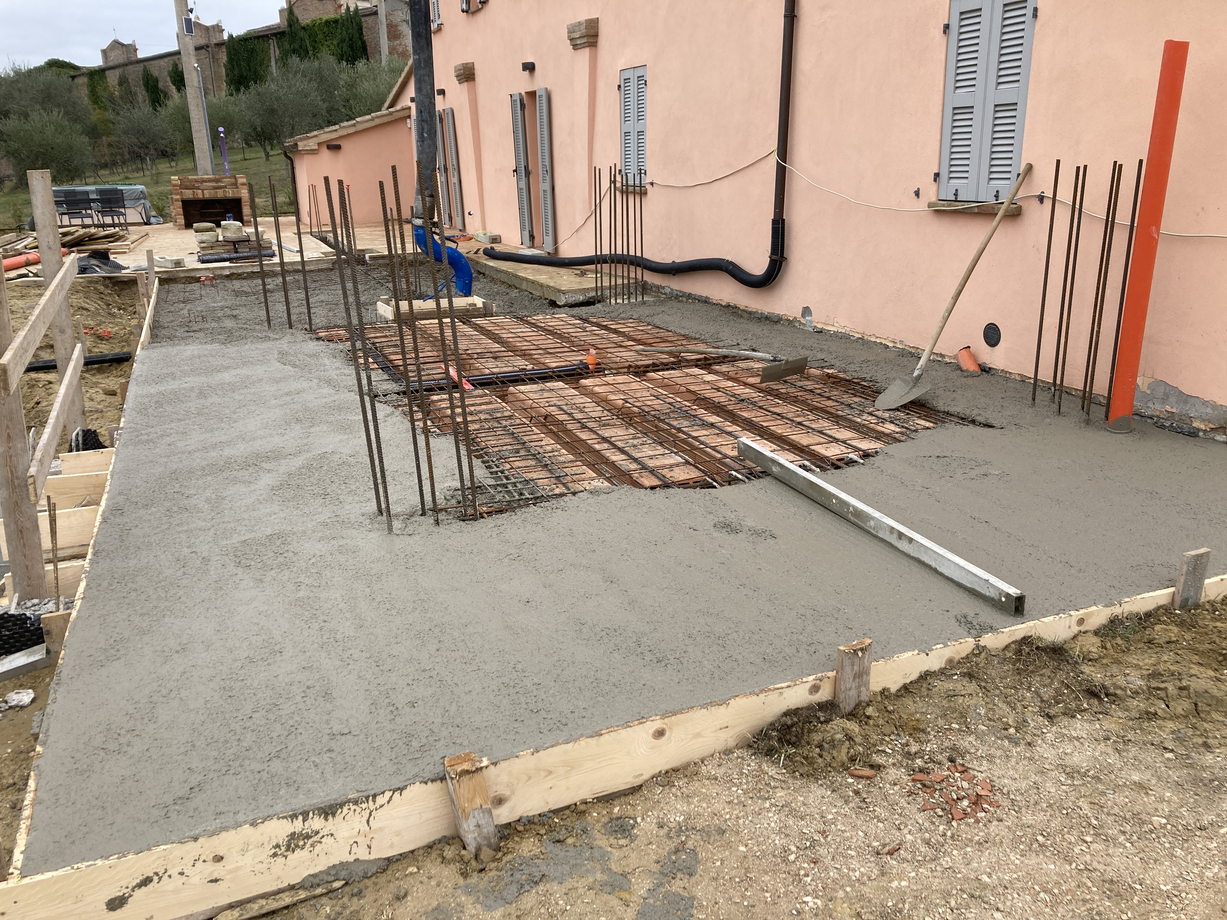 I chatted to the workers who reckoned they would be finished by Friday night ready for concrete on the Monday. Gabriele tried to persuade them that he should order the concrete lorry for Friday afternoon again. The workers very obviously didn’t agree. They didn’t fancy laying the concrete in the dark again. After what we would consider a blazing row but just a normal conversation between worker and boss in Italy, the workers won.