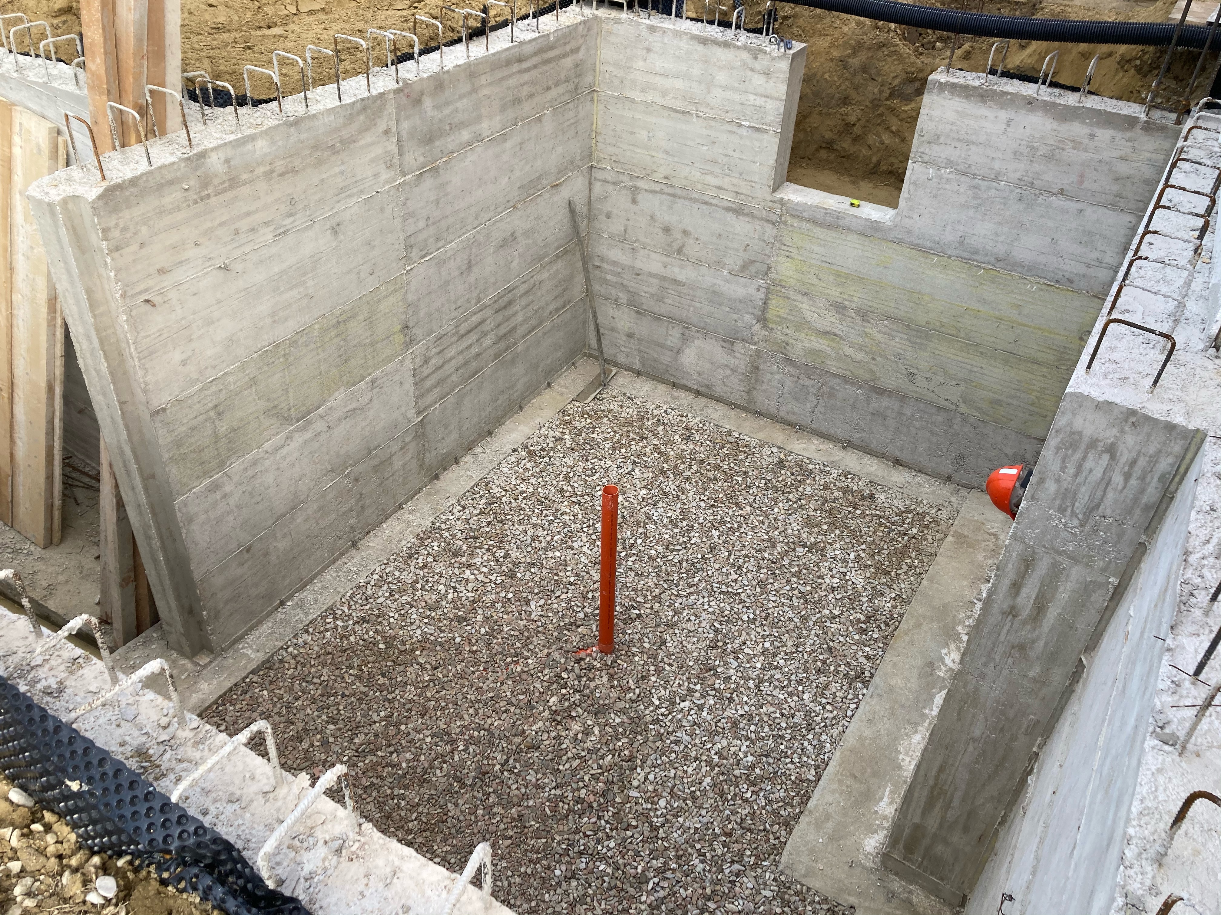 This week we said goodbye to the swimming pool. Pump the water out again, fill the space with gravel and concrete over. We had a floor.