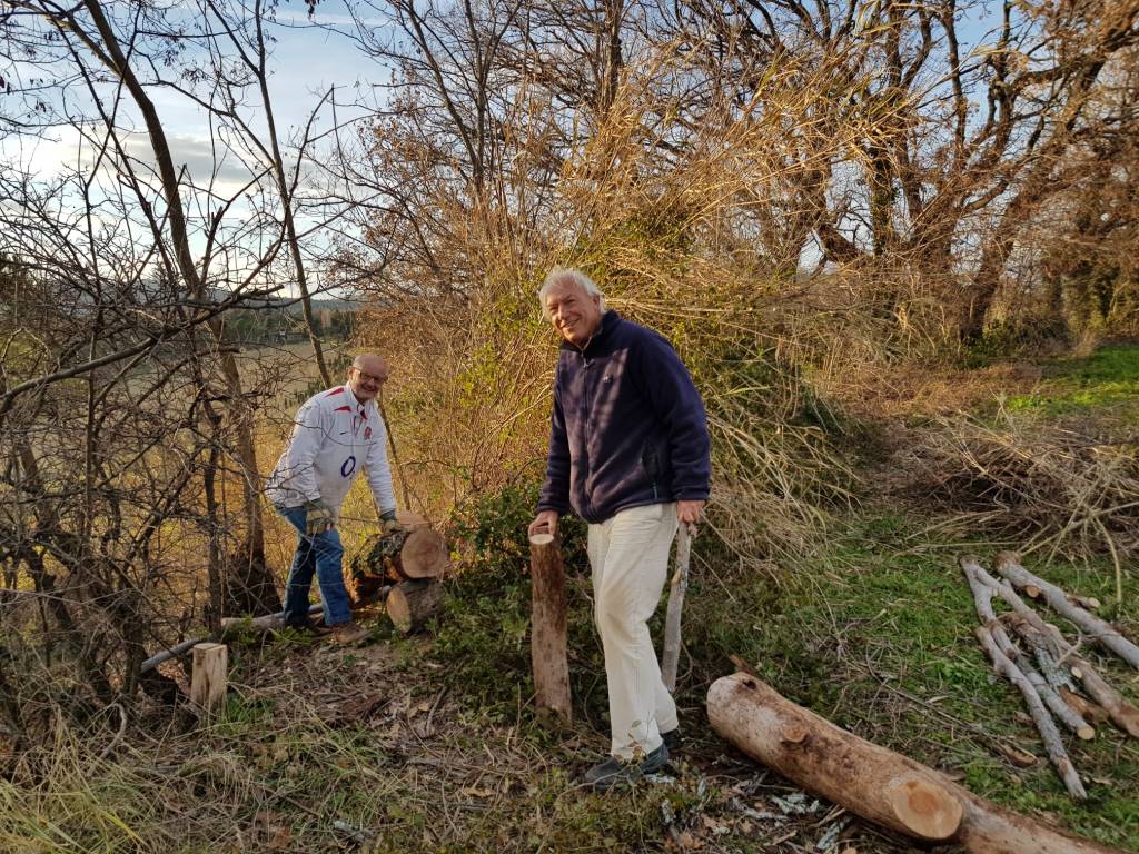 We had a great time during the winter. Felling trees, building fences, clearing land, manuring vines and chopping wood for both our fires. During lockdown we were allowed outside. It was a great way to get away from our place. A lot of work but a lot of laughs.