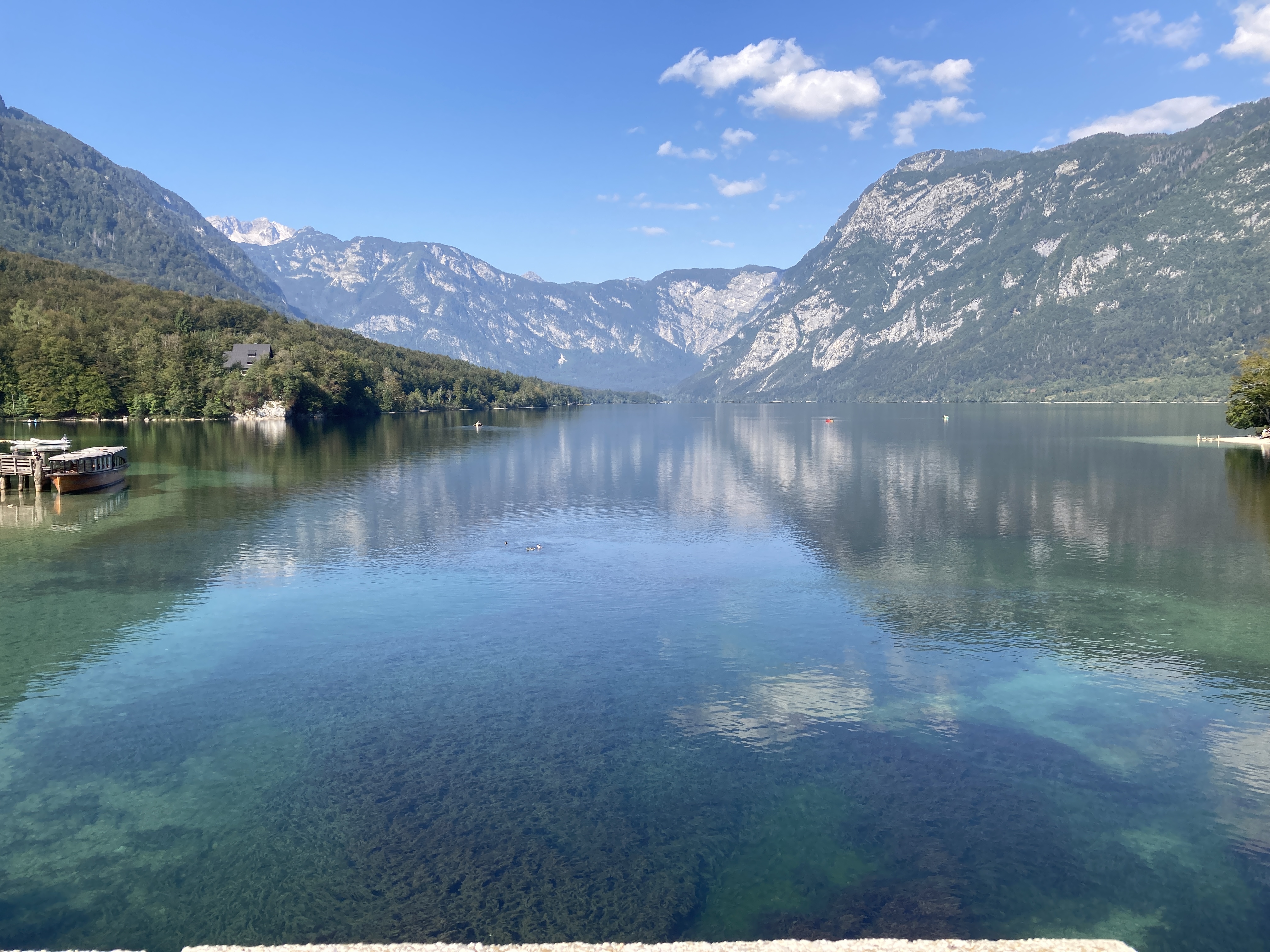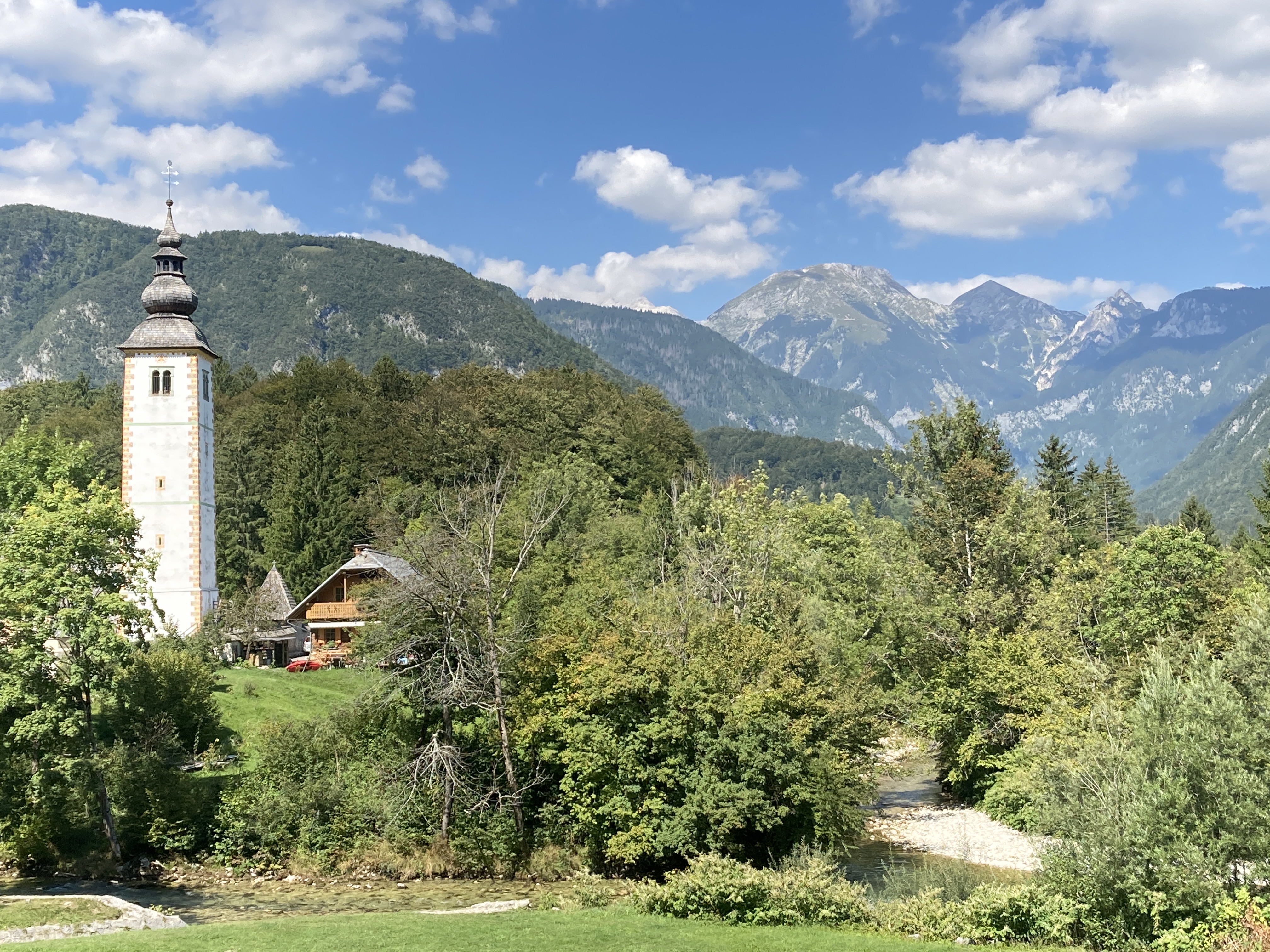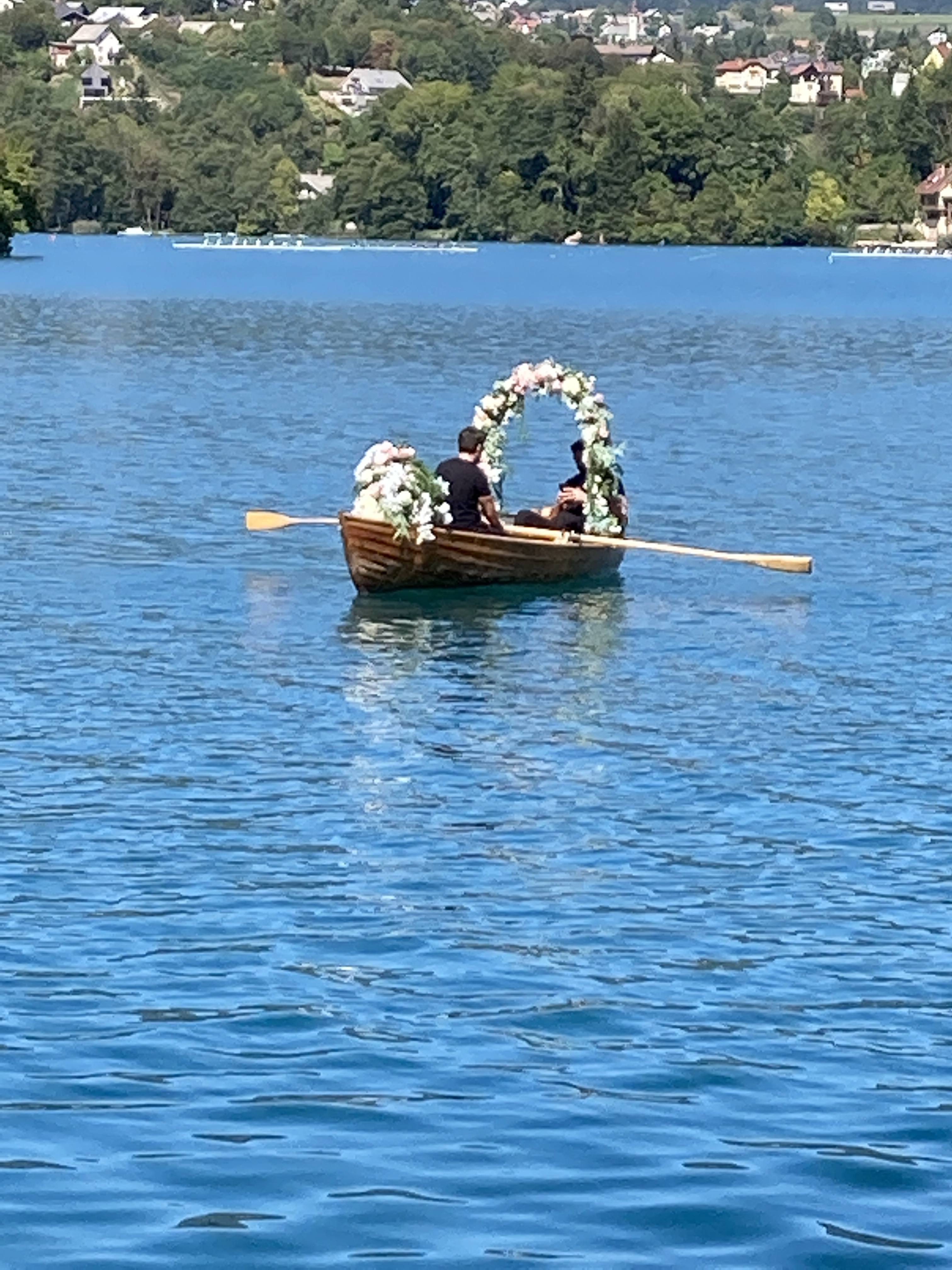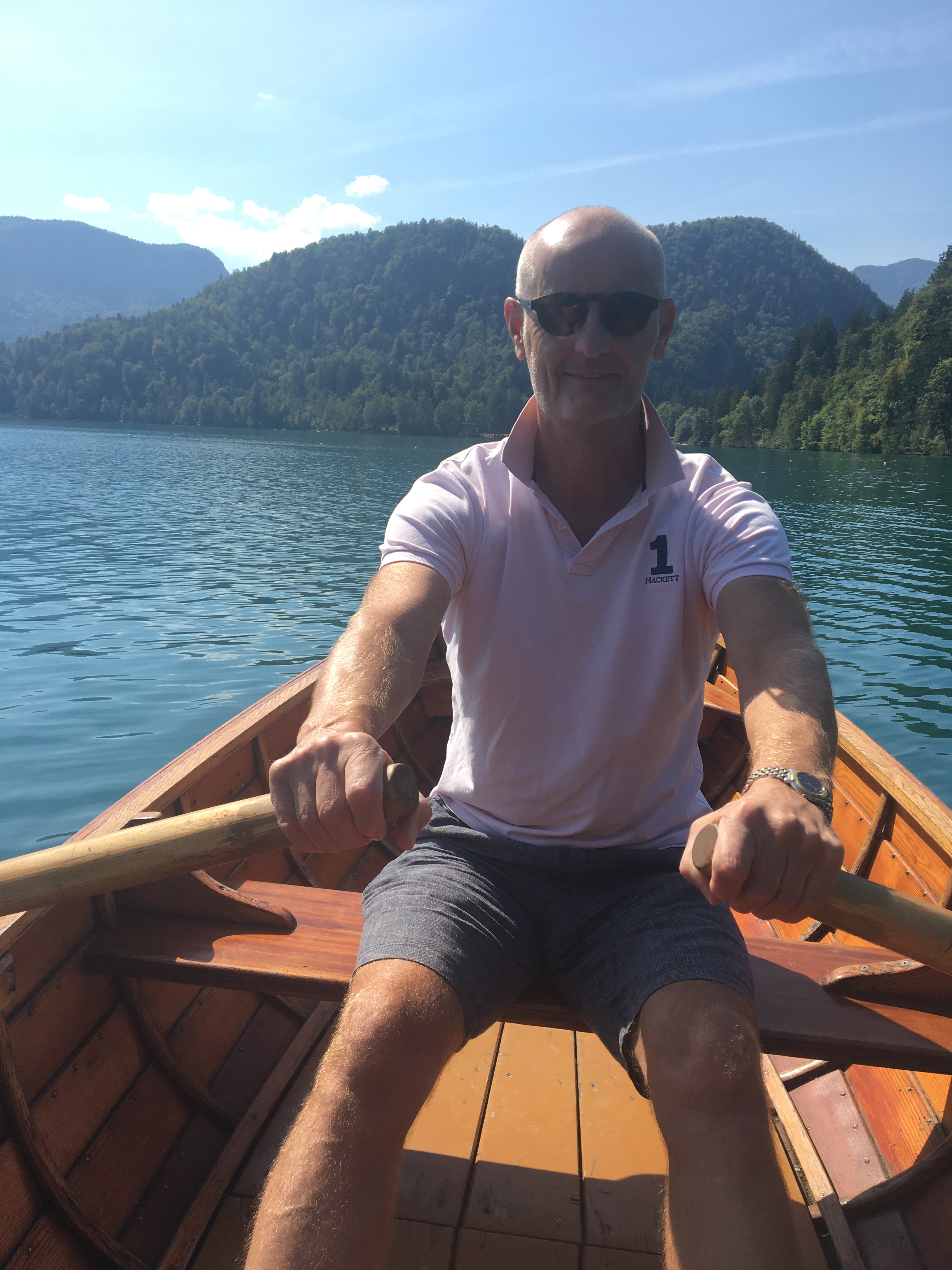 Whilst rowing on Lake Bled we heard from the island “Hello Colin, Colin Fisher”. It was the daughter of Mario in our village.