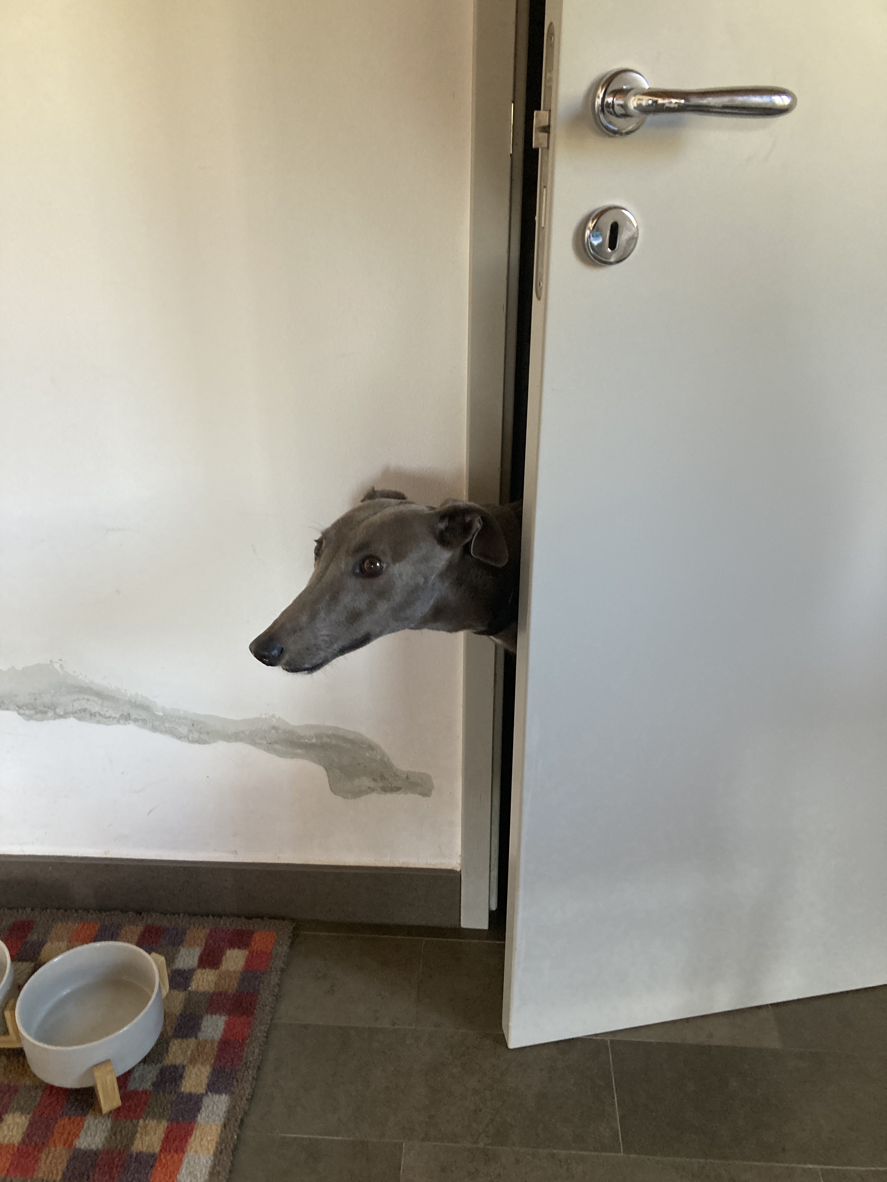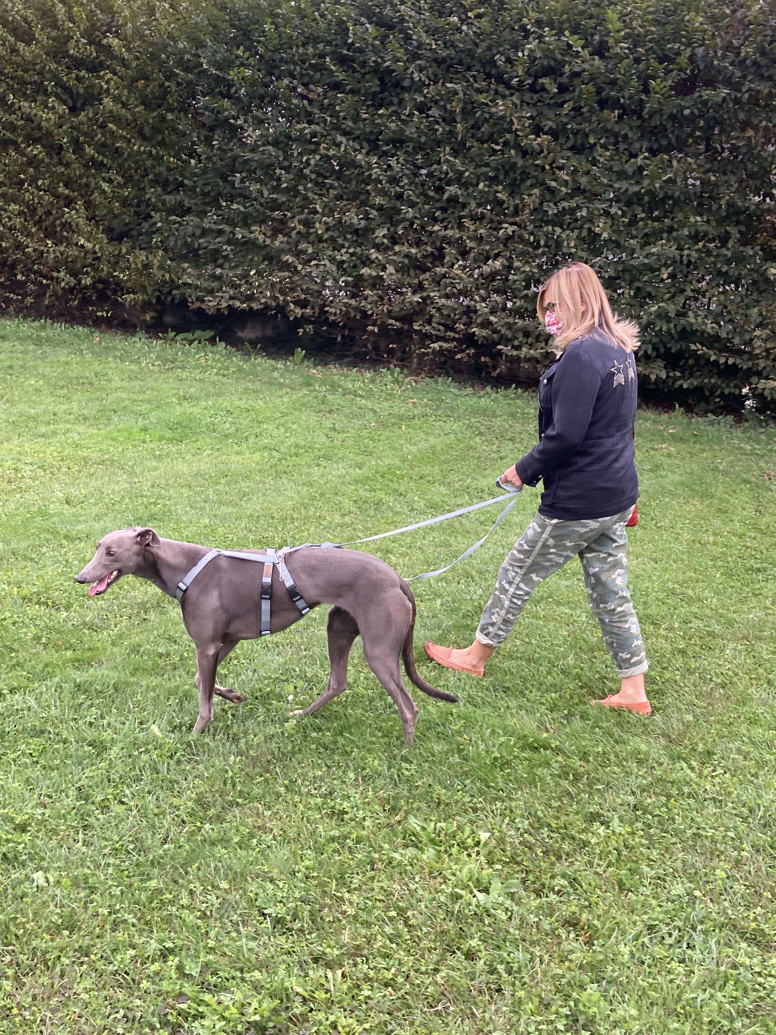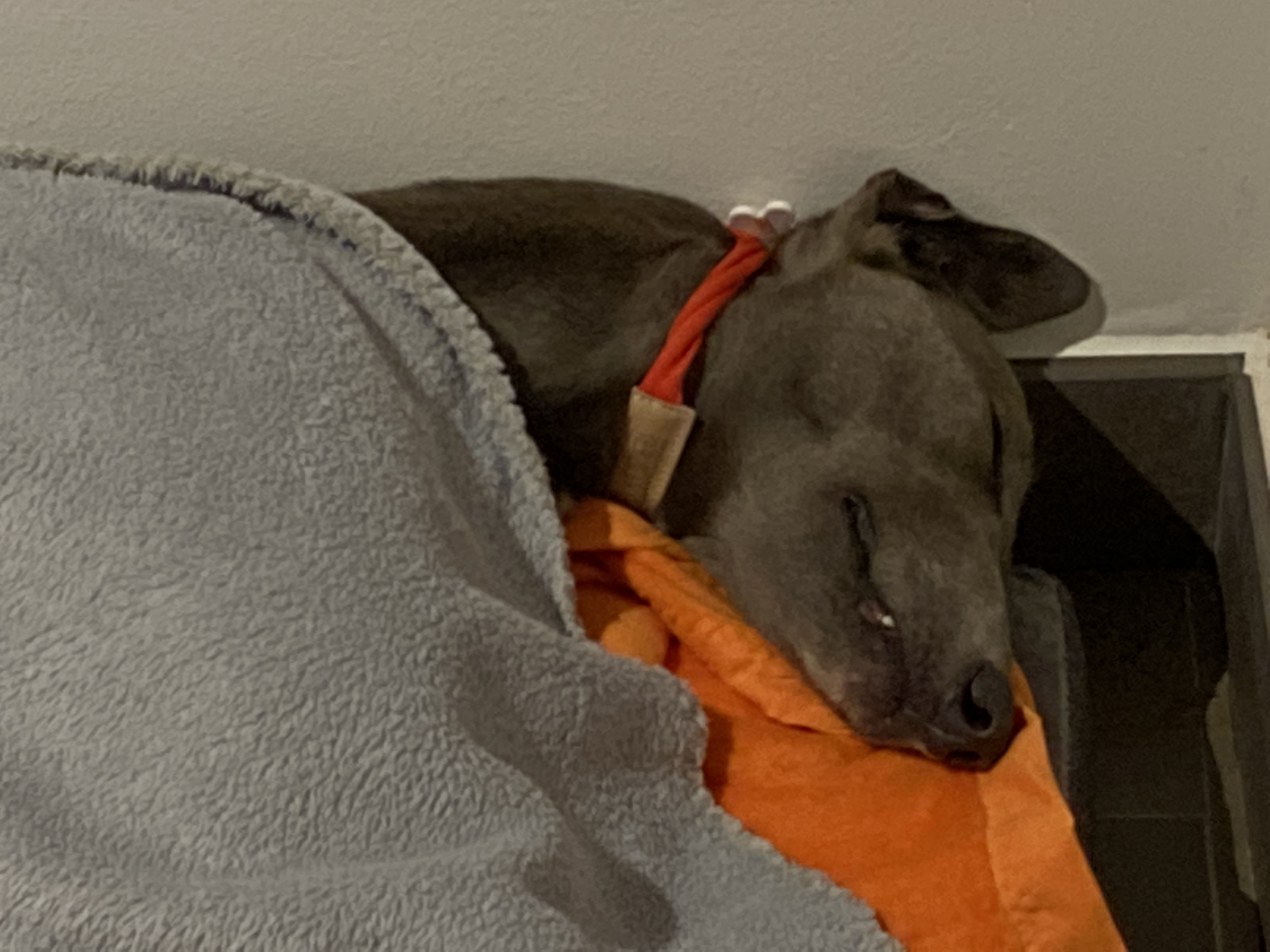 That’s the day that Phoebe entered our lives. An ex racing greyhound from Ireland. We met her in a field with all the other dogs that had been driven from Ireland, then drove her to her new home. Colin drove whilst Jan sat in the back with her. By the time we got home Jan was smitten, we both were. Such a beautiful young lady.