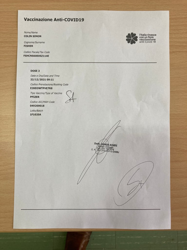 The Italian health service starting offering third vaccinations to foreign residents. We took our NHS QR codes for our first two doses. They were recognised and we had our third dose. Our Green Pass was upgraded to the Super Green Pass. We were as free as we could be. It’s great when technology works.