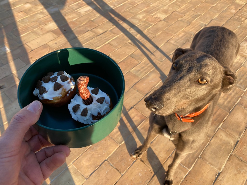 On the first day of the month, All Saints Day, we celebrated Phoebe’s second birthday with a Greyhound friendly cake. She enjoyed opening her presents.