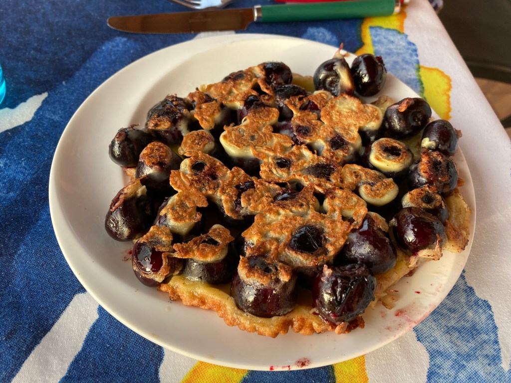 For dessert Gabrielle made traditional Kersenpannenkoek (cherry pancakes) from Limburg, the Netherlands. They didn’t last long.